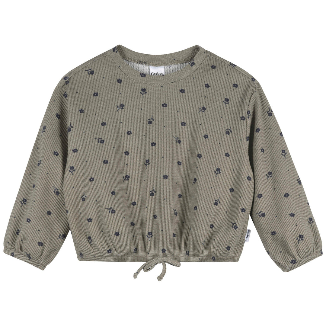 Let her twirl, run, and play in cozy comfort all season long! this toddler girl's fall outfit is made from soft, stretchy fabric that moves with her, perfect for playdates and pumpkin patch days. The long sleeve top and comfy leggings are made for cool-weather fun, with elastic at the waist and sleeves for easy dressing. A comfort-stretch waistband on the leggings keeps her comfy all day, and thoughtful details like a sweet bow on the shirt hem and lettuce edge trim on the leggings add the cutest finishing touches. Our essentials have been independently certified with STANDARD 100 by OEKO-TEX® so that you don’t have to worry about harmful substances in your little one’s wardrobe. Includes matching top and bottom.