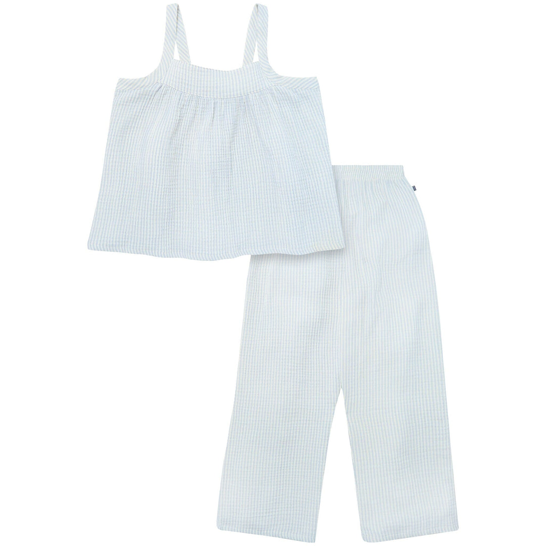 • Made from 100% cotton gauze for a lightweight/ breathable fit, comfort-stretch waistband on the pants, sleeveless top with ruffled bottom and straps across back