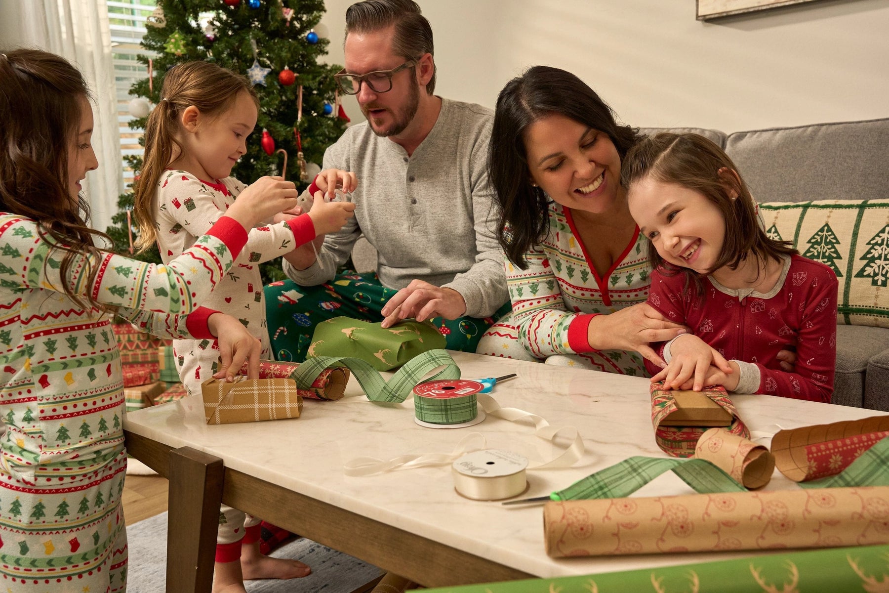 Enjoy the festive season in our women's holiday pajamas, crafted from exceptionally soft hacci fabric for your comfort. The long sleeve button top offers a timeless appeal, while the comfort-stretch waistband provides a cozy fit. These pajamas are perfect for lounging and staying warm during the cooler months. Make holiday memories even more special with matching pajamas for the whole family, perfect for adorable photos and seasonal celebrations. Our essentials have been independently certified with STANDARD 100 by OEKO-TEX® so that you don’t have to worry about harmful substances in your wardrobe. Pack includes matching pajama top and bottom.