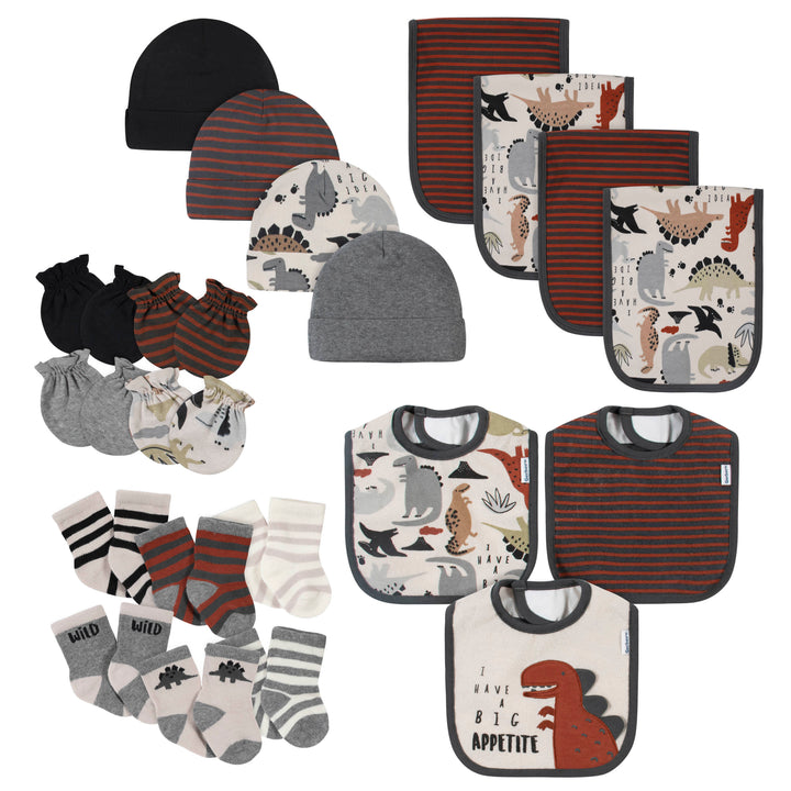 21-Piece Baby Boys Dino Terry Bib, Burpcloth, Mittens, Cap and Bootie Sock Set