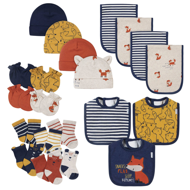 21-Piece Baby Boys Fox Terry Bib, Burpcloth, Mittens, Cap and Bootie Sock Set