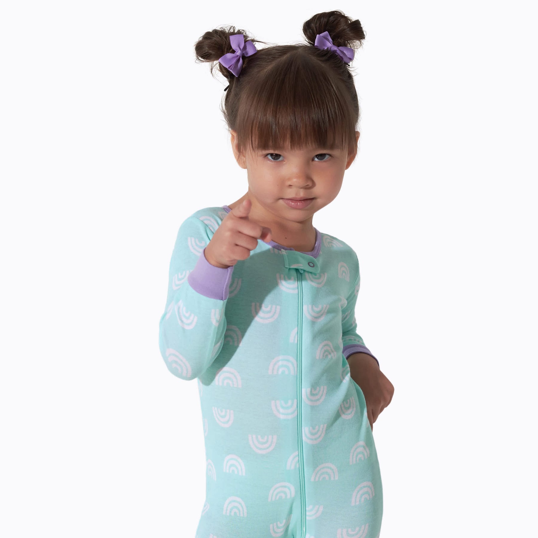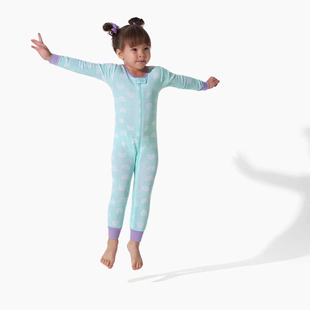 Make bedtime fun with these rainbow floral themed PJs! Our snug fit one-piece cotton pajamas are soft and safe, perfect for sleeping or lounging! We use STANDARD 100 by OEKO-TEX® certification on products tested in an independent laboratory against a list of more than 400 harmful substances, including PFAS.