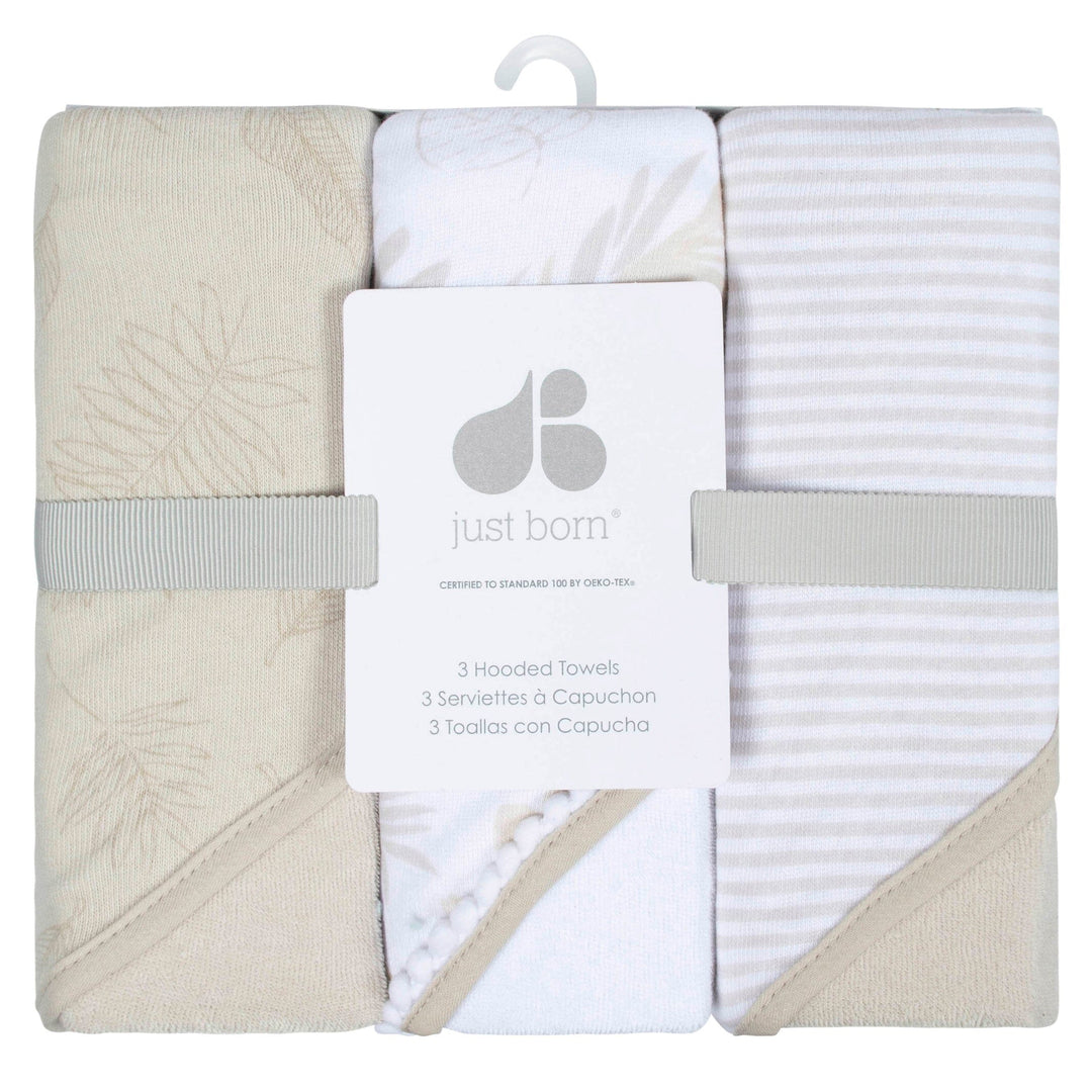 3-Pack Baby Neutral Natural Foliage Hooded Towels