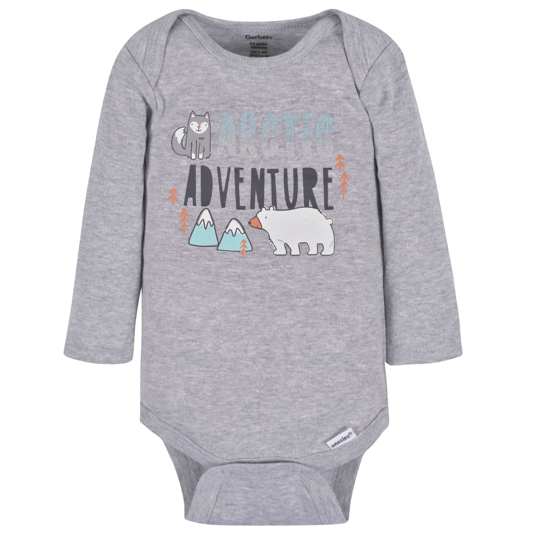 Arctic Adventure! Our long sleeve bodysuits are perfect for layering in cool weather and are made with soft cotton rib. We use STANDARD 100 by OEKO-TEX® certification on products tested in an independent laboratory against a list of more than 400 harmful substances, including PFAS.
