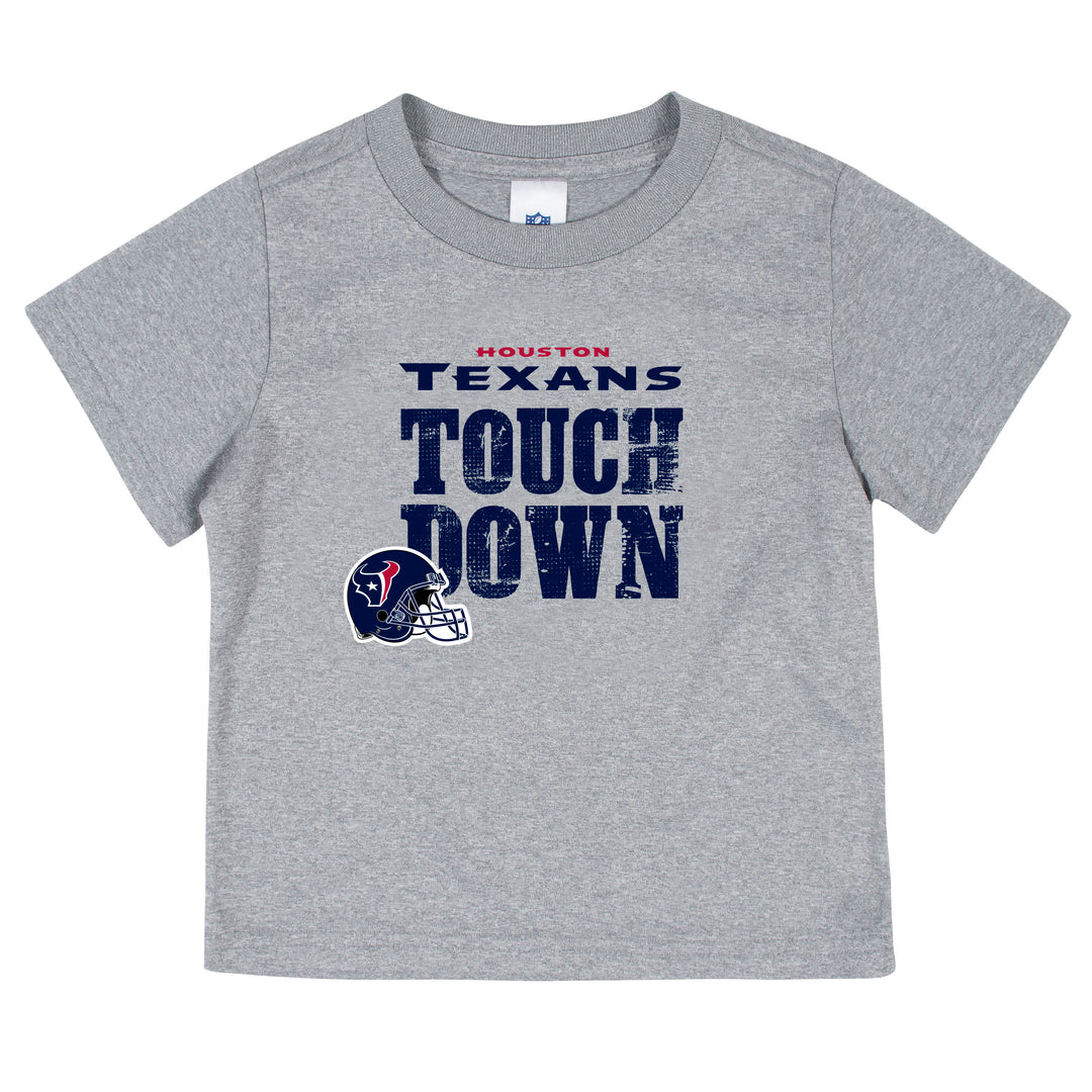 Even the smallest family members can get in the football spirit with our officially licensed NFL Texans tees. This product contains Repreve® polyester made from recycled plastic bottles (or recycled content). Products made with Repreve help to conserve energy and natural resources. And, gives you another great reason to recycle. These tees feature comfy, casual crew necks to keep your little one comfortable throughout the entirety of the game (and the whole day long!). The screen print team logos are bright and bold, featured front and center on the t-shirts. They’re the perfect tees for warm game days and cool games days, as they may be worn comfortably all on their own or layered over to keep warm. These tees are machine washable to take care of any game-time spills. This pack contains three tees.