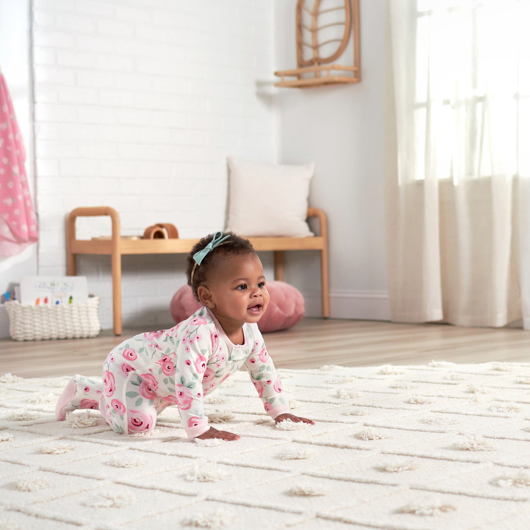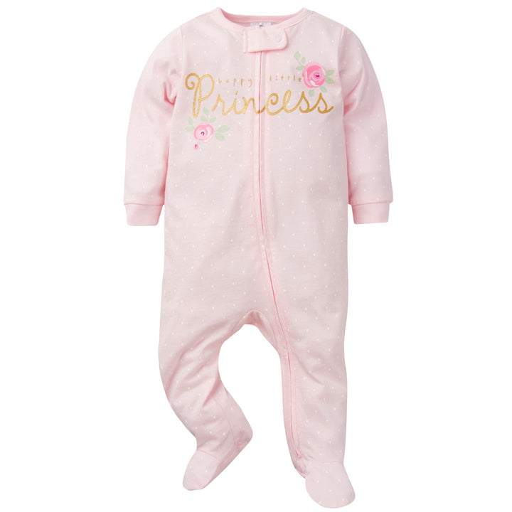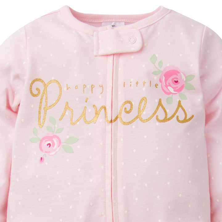 Our Sleep ‘n Plays are super convenient and comfortable! Each one is made with soft cotton, a gentle fabric that’s perfect for your baby’s sensitive skin. Our essentials have been independently certified with STANDARD 100 by OEKO-TEX® so that you don’t have to worry about harmful substances in your baby’s wardrobe. Our Sleep ‘n Plays feature front zippers for simple changes and may be worn morning, afternoon, or night. Each baby boy outfit or baby girl outfit is machine washable and machine dryable for your convenience. This pack includes three floral princess themed Sleep 'N Plays.