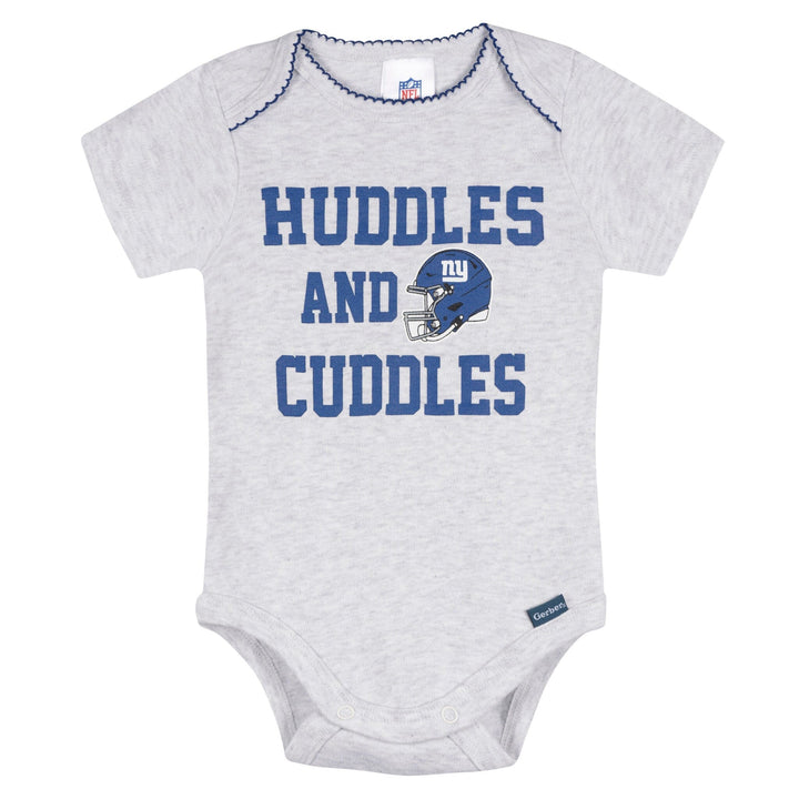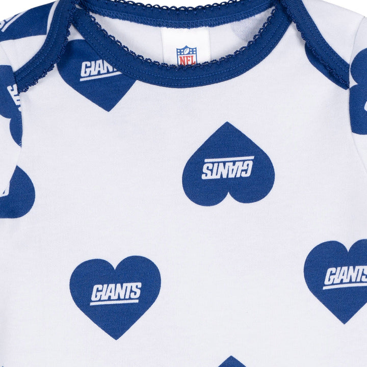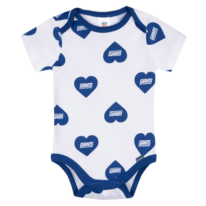 Get your little Giants fan ready to cheer in cozy comfort! These soft, smooth bodysuits have a thick, durable feel with just the right amount of stretch. A lap shoulder neckline makes dressing a breeze, while leg snaps allow for quick diaper changes. Stretchy ribbing at the neckline and leg openings keeps baby comfy through every playtime and cuddle. With heart-accented Giants graphics, this 3-pack is the sweetest way to show team spirit! Our essentials have been independently certified with STANDARD 100 by OEKO-TEX so that you don’t have to worry about harmful substances in your little one's wardrobe. Includes three baby girl bodysuits.