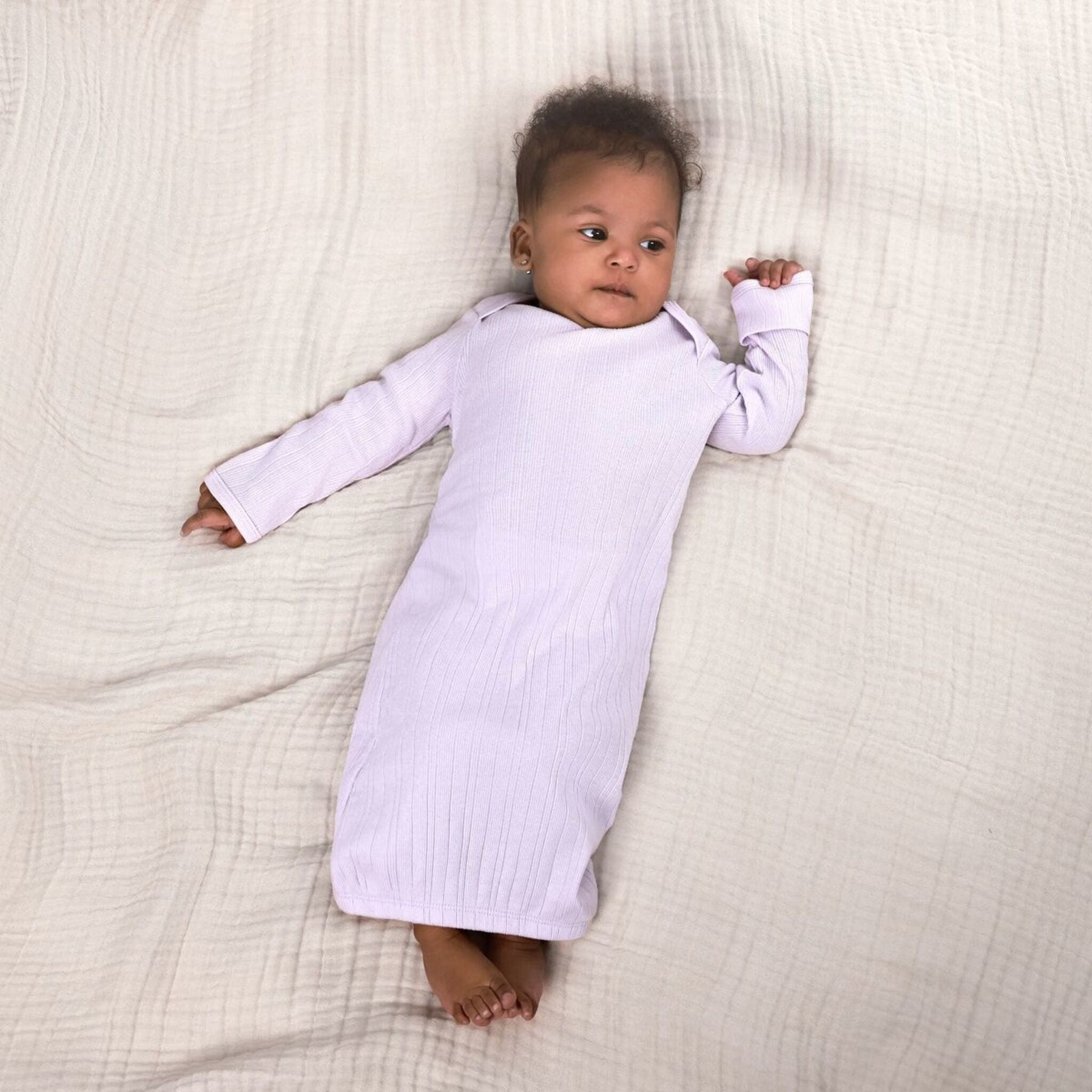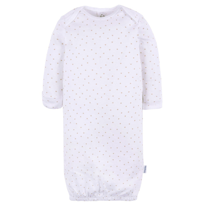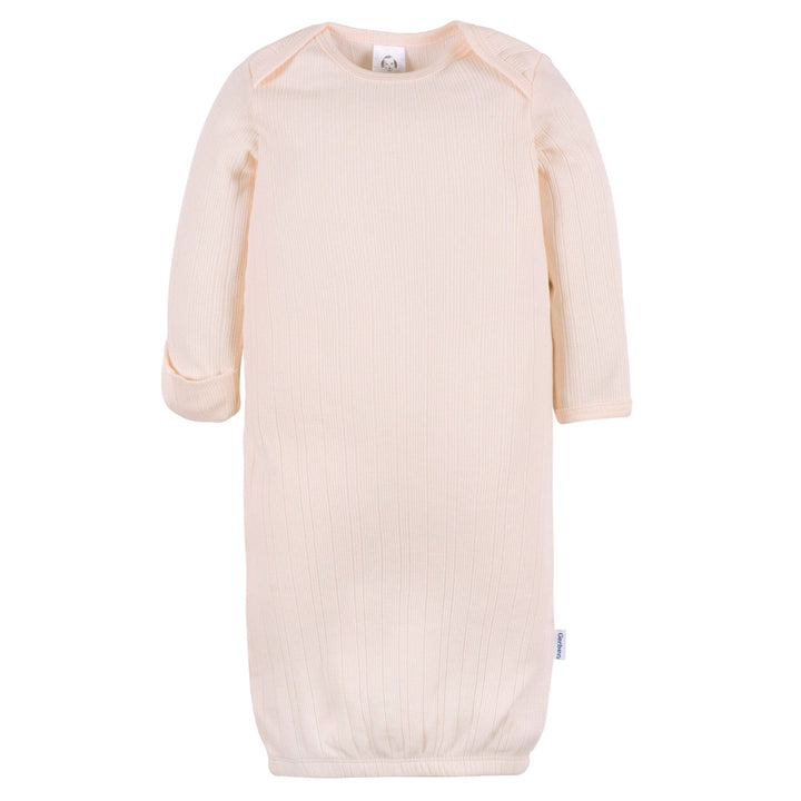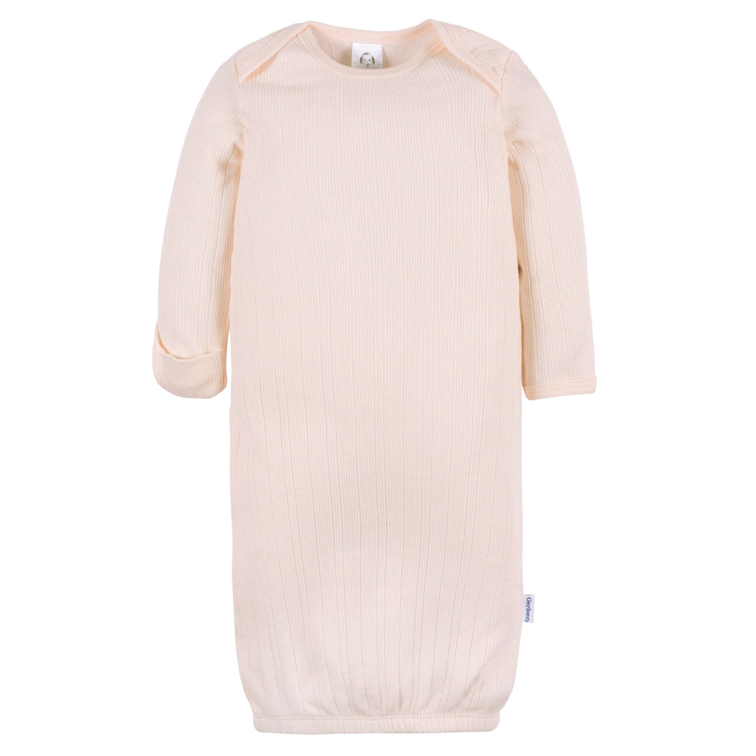 Soft pastels make this 3-pack of baby gowns an adorable addition to your little one’s sleep collection. With an expandable lap shoulder neckline and gentle elastic opening at the bottom, it keeps diaper changes quick and simple. Made from 100% cotton rib, these gowns are breathable yet cozy, perfect for newborn sleep and snuggles. The gowns ensure good airflow to keep you baby cool, and it's easy add a layer underneath with a Onesies® bodysuit for a little extra warmth. Our essentials have been independently certified with STANDARD 100 by OEKO-TEX® so that you don’t have to worry about harmful substances in your little one's wardrobe. Includes three baby gowns.