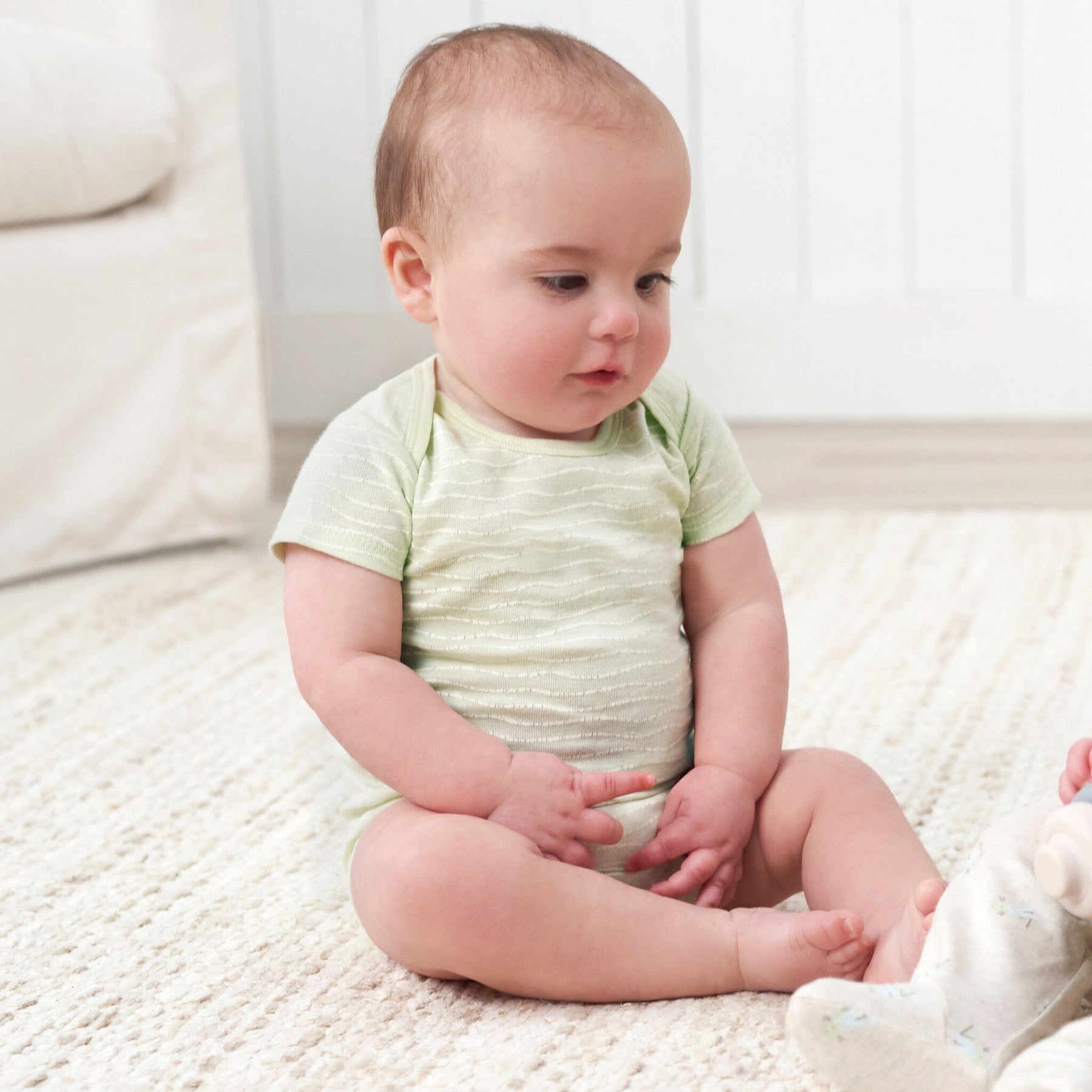 Gear up for everyday adventures with this delightful three-pack of gender-neutral short sleeve Onesies® bodysuits! Crafted from 100% cotton, these bodysuits are soft and gentle on your little one's sensitive skin, providing all-day comfort. Designed with convenient leg snaps and lap shoulder necklines, they make outfit changes and diaper swaps quick and easy. The short sleeve style is perfect for sunny day fun, keeping your baby cool and comfy. Featuring a charming oatmeal, green, and gray color scheme with playful cricket, bike, and park-themed prints, this set is a must-have for tiny explorers ready to enjoy the great outdoors! Our essentials have been independently certified with STANDARD 100 by OEKO-TEX® so that you don't have to worry about harmful substances in your baby's wardrobe. This pack includes three Onesies® bodysuits.