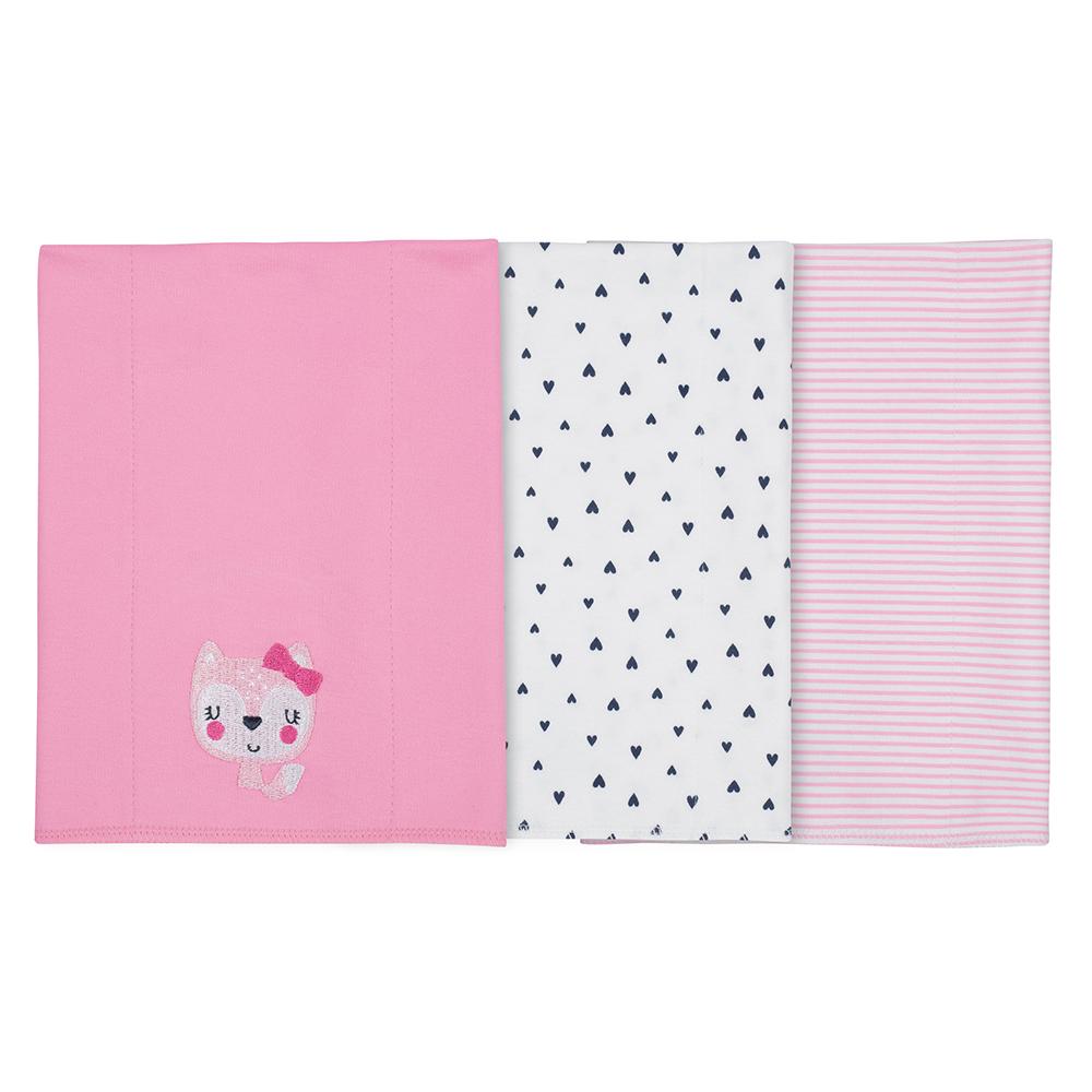 3-Pack Girls Fox Knit Burpcloth