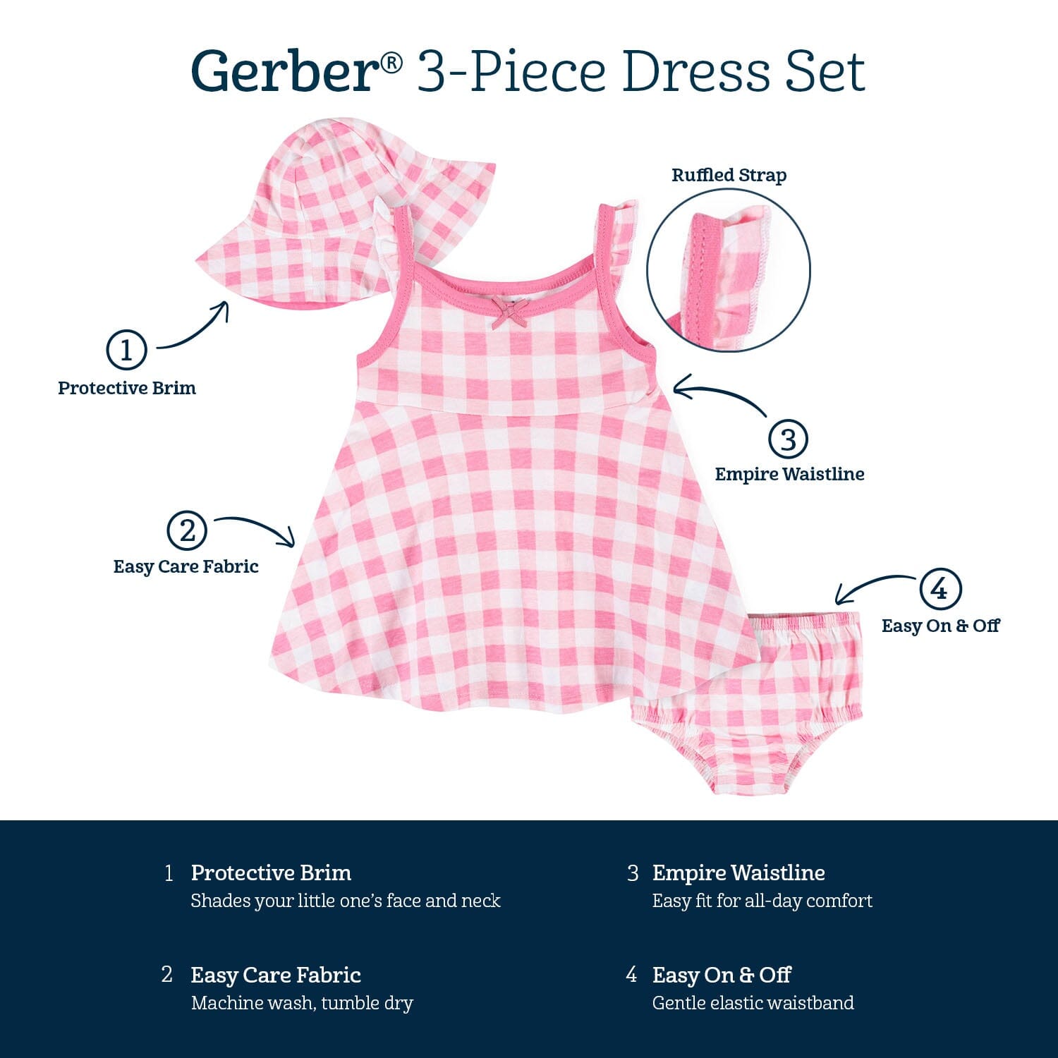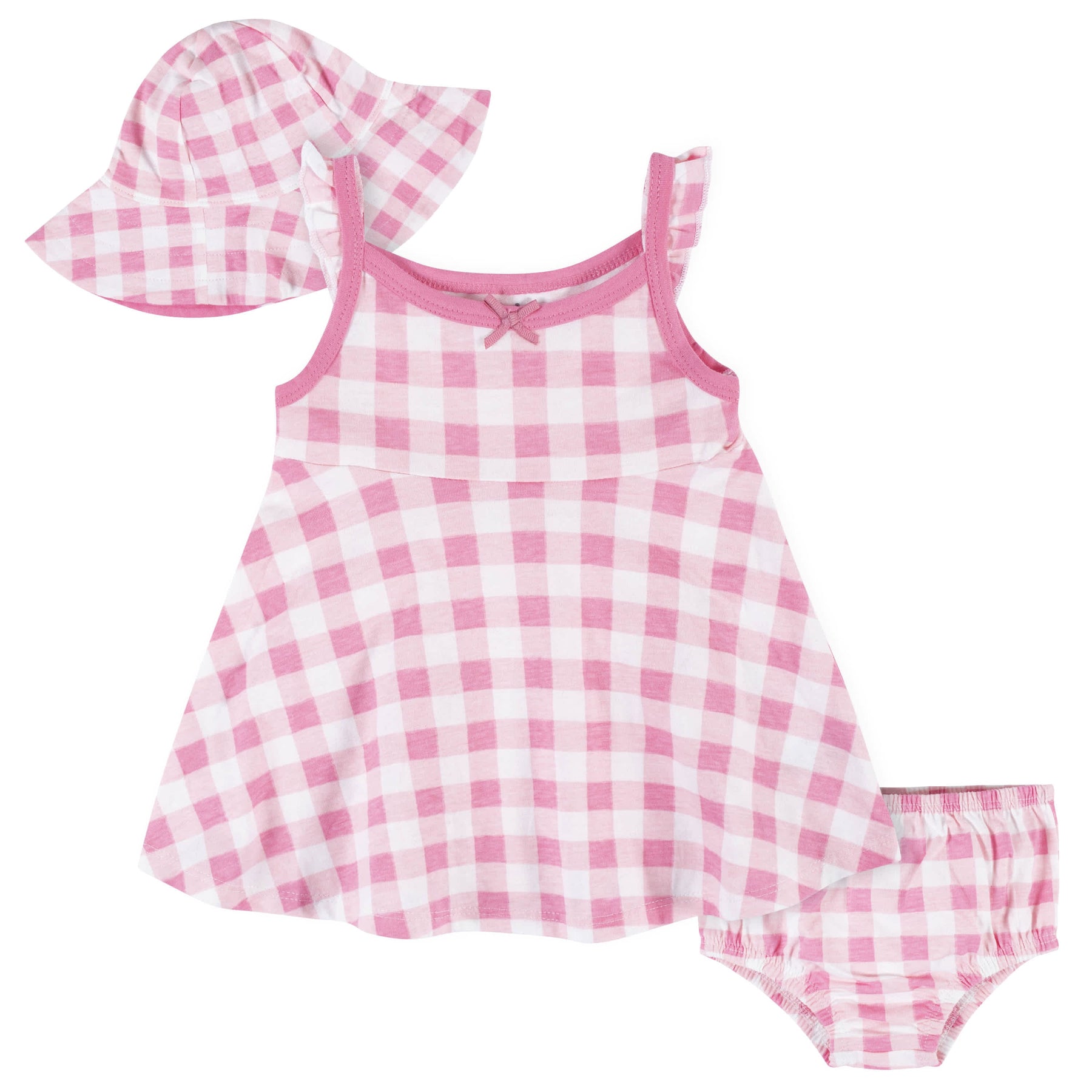 3-Piece Baby & Toddler Girls Summer Blossom Dress, Diaper Cover & Sun Hat Set