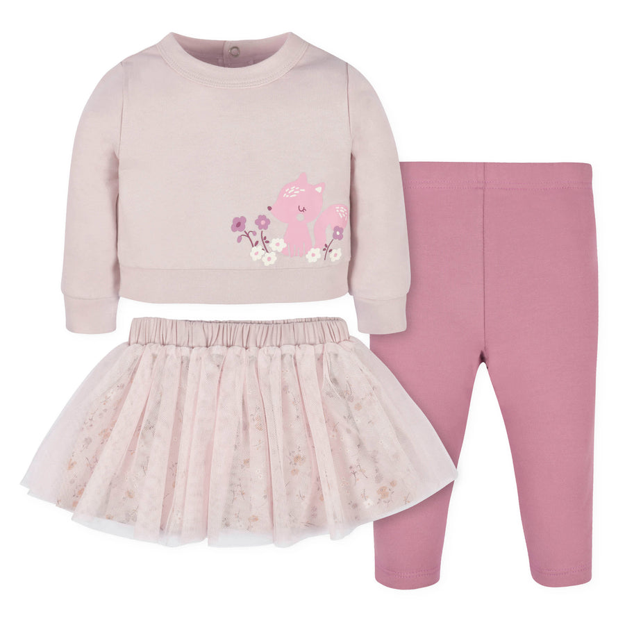 3-Piece Baby & Toddler Girls Purple Woodland French Terry Top, Tulle Tutu, & Legging Set