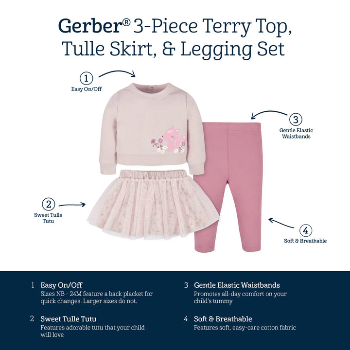 • Includes one French terry top, one tulle tutu & one pair of leggings