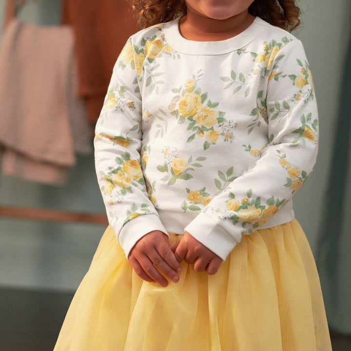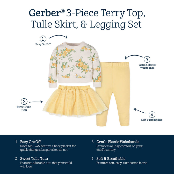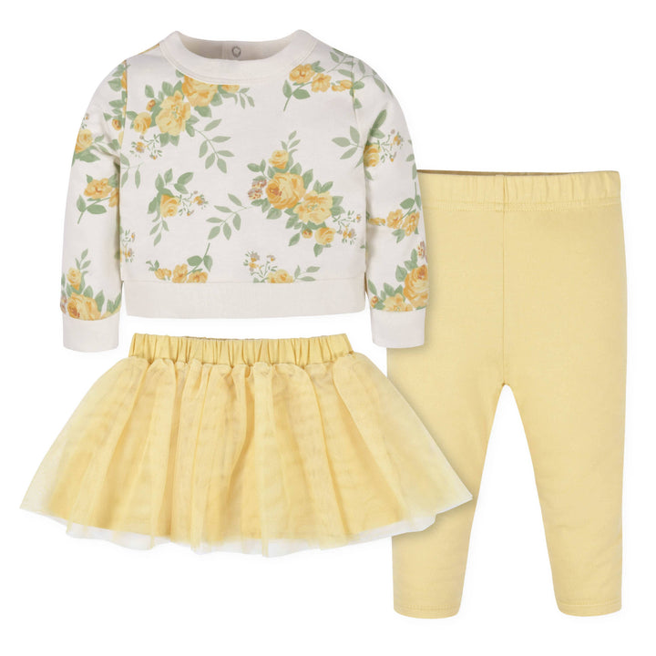3-Piece Baby & Toddler Girls Golden Flowers French Terry Top, Tulle Tutu, & Legging Set