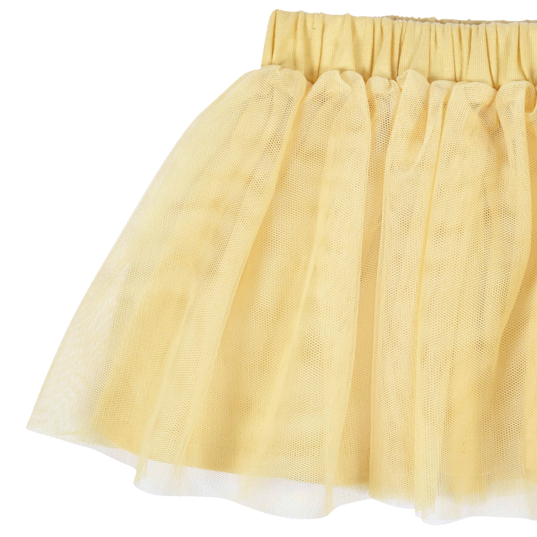 • Top: 100% cotton french terry with 100% cotton jersey binding, Tulle Skirt: 100% polyester tulle & Underskirt: 100% cotton jersey, Leggings: 95% cotton 5% spandex jersey