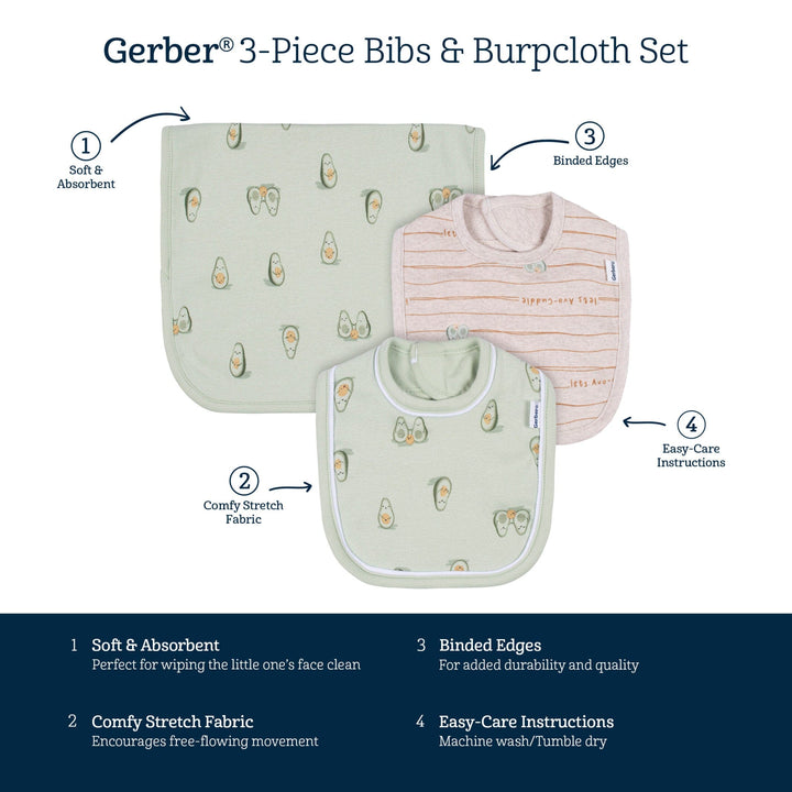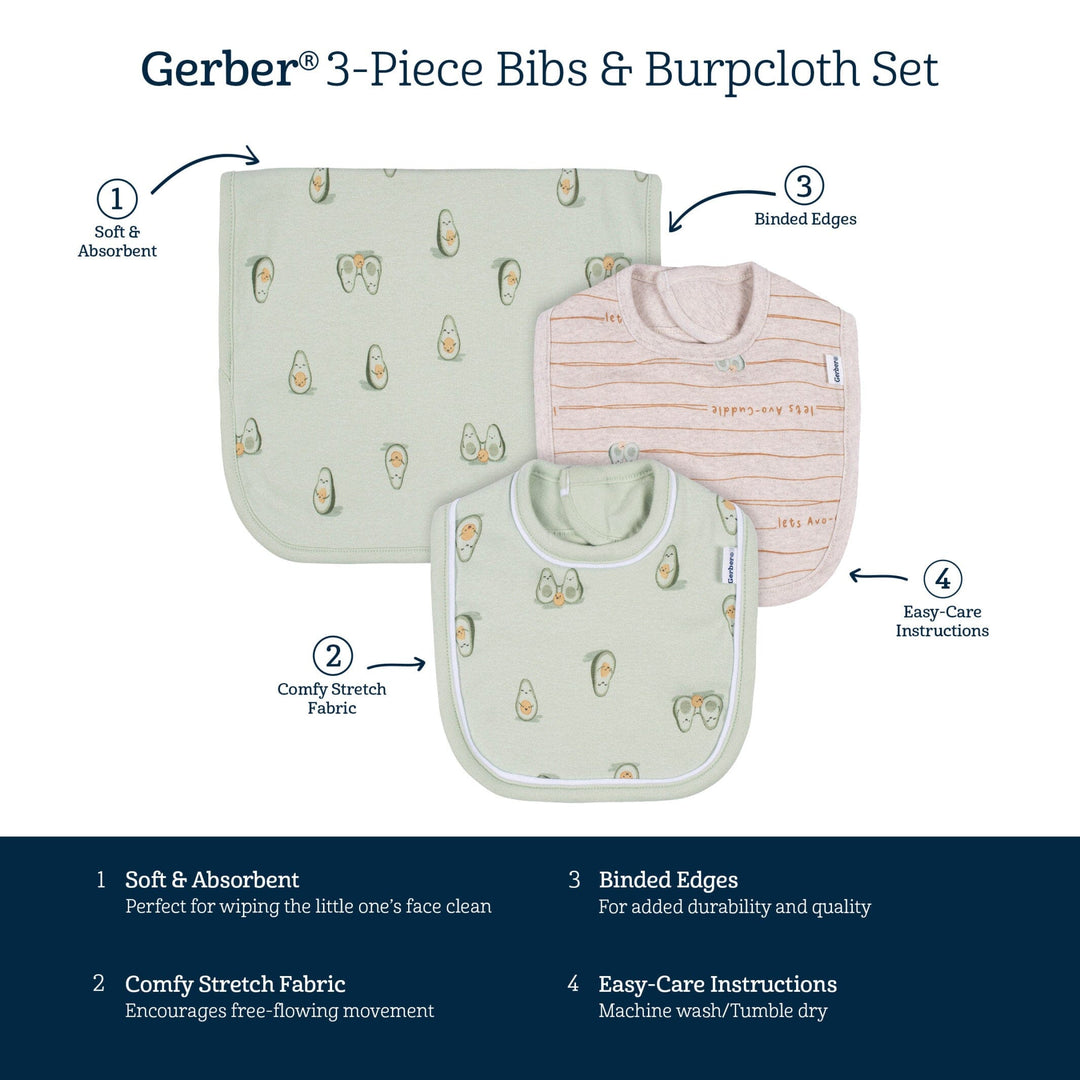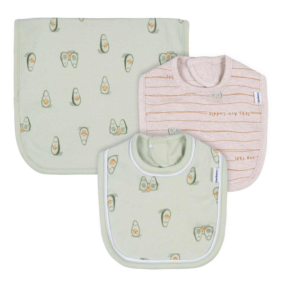 3-Piece Baby Neutral Avo-Cuddle Bibs & Burpcloth Set