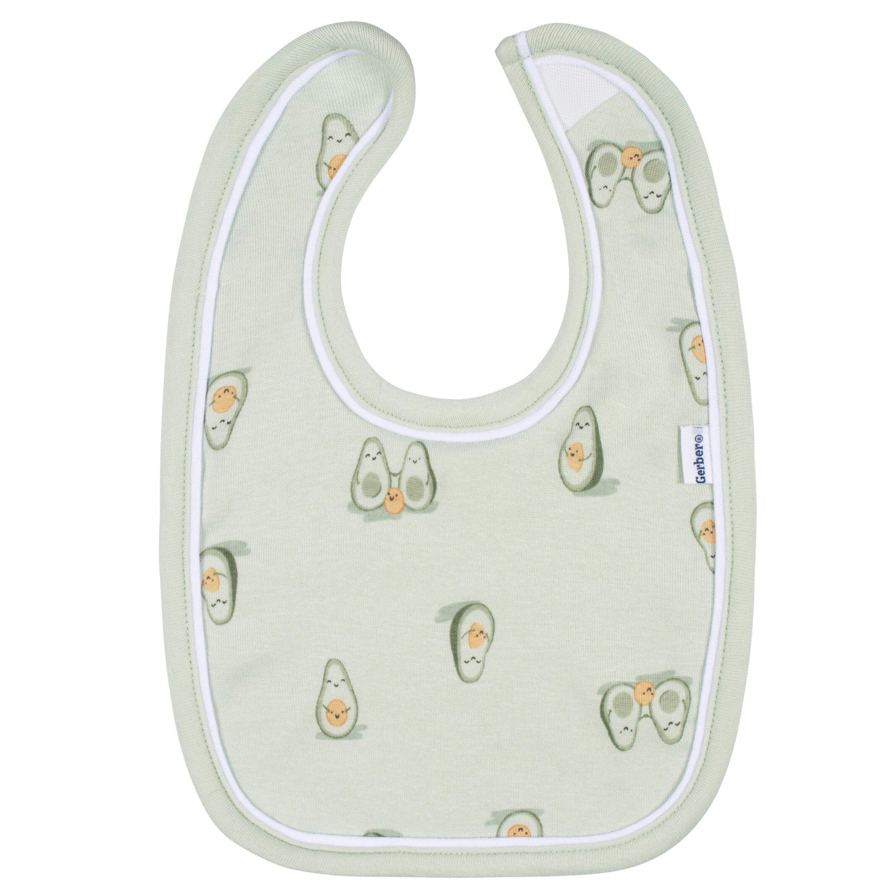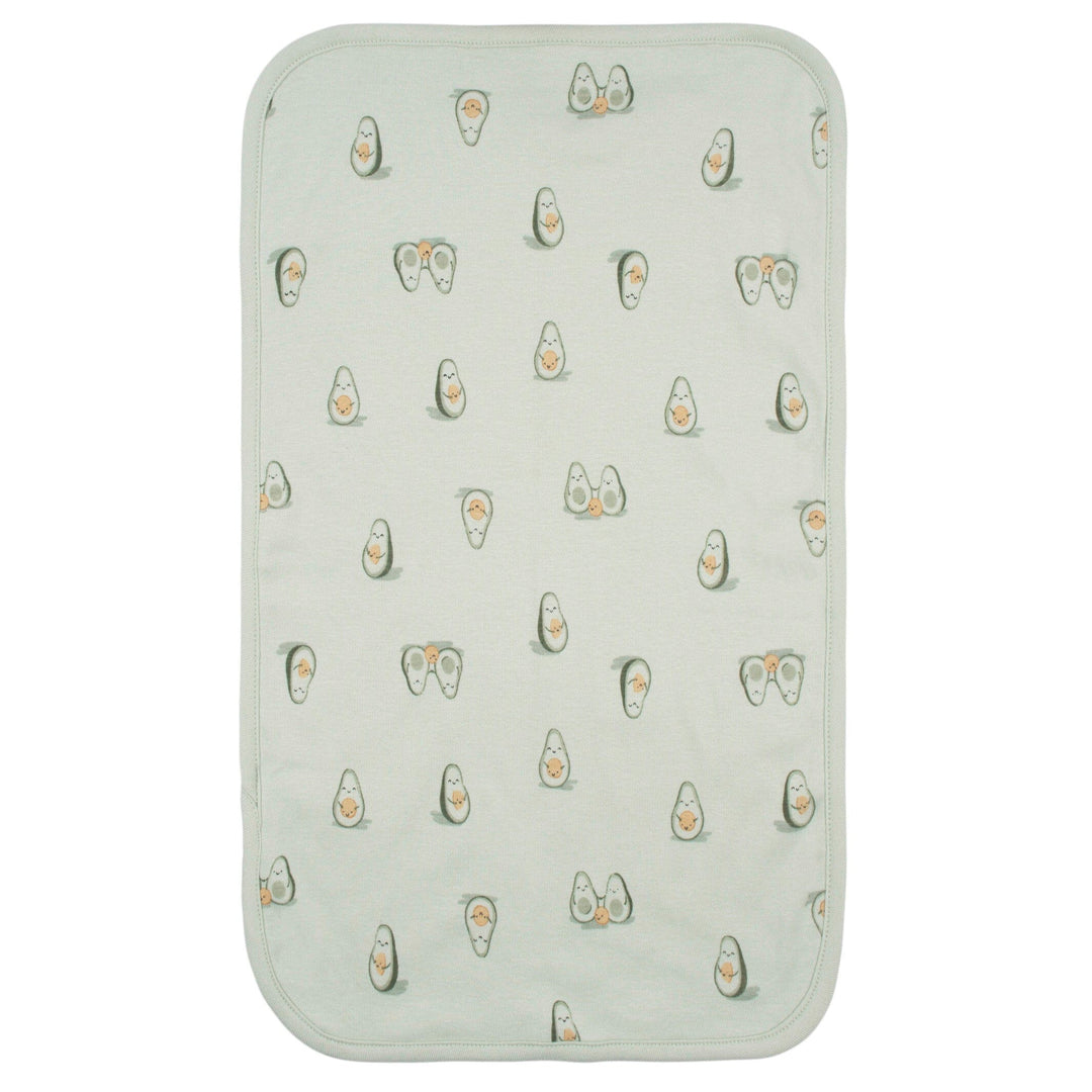 - Green and tan avocado print bibs and burpcloth set