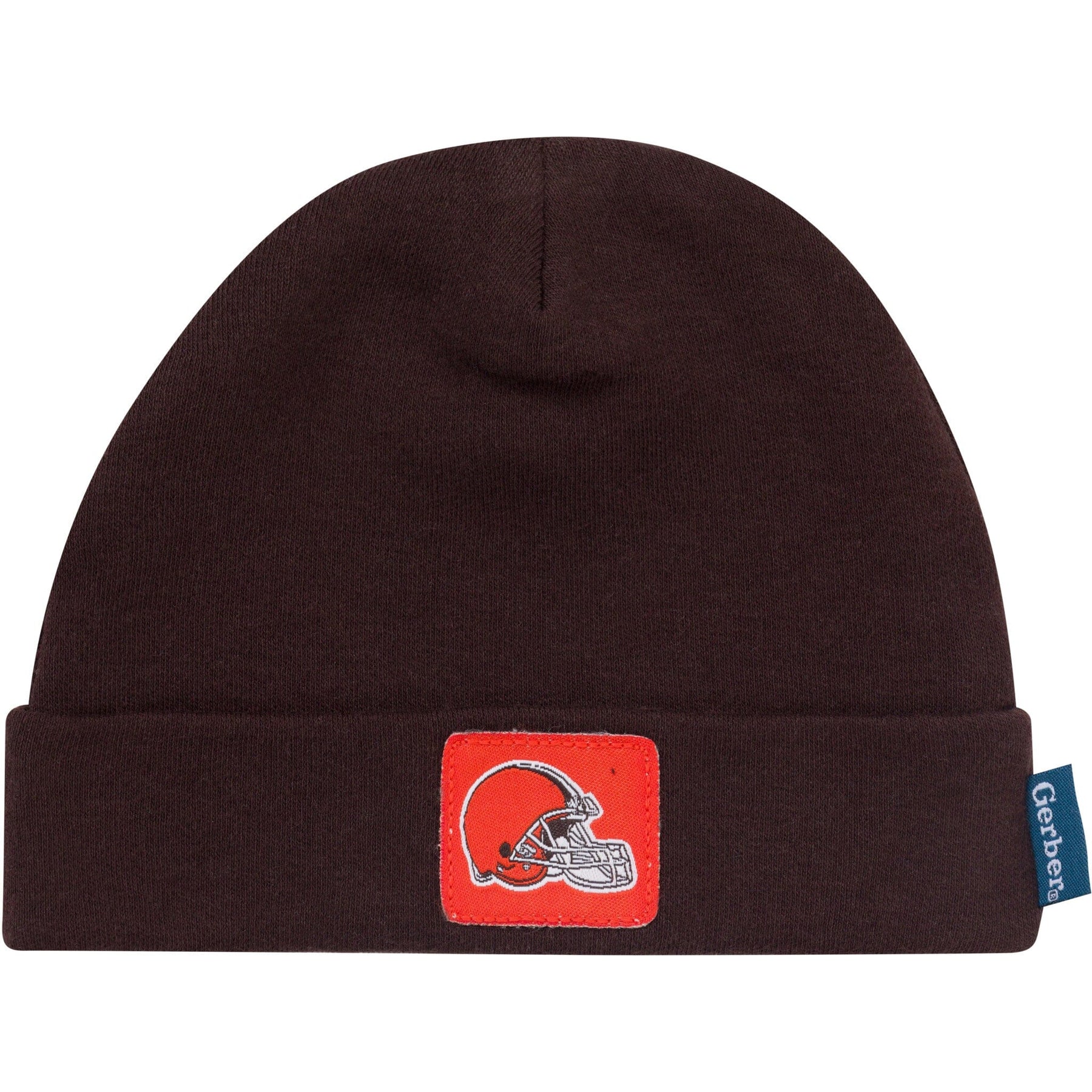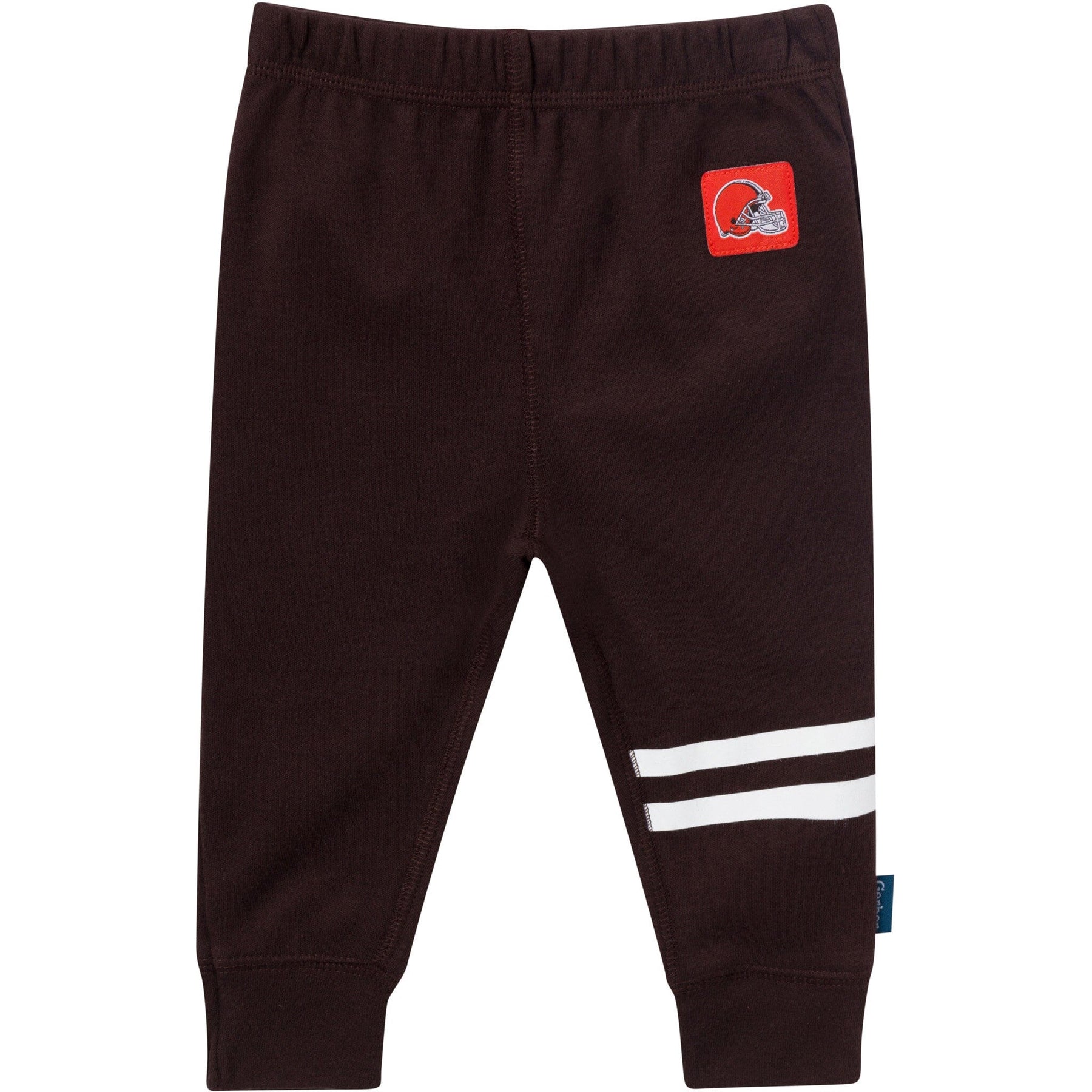 Your tiniest Dawg Pound member will be game-day ready in this Cleveland Browns 3-piece set! The cozy bodysuit, stretchy pants, and soft cap make sure they stay comfy from kickoff to naptime. With classic brown and white, bold team logos, and a playful “Newest Fan” message, this outfit is a must-have for any future Cleveland football star! Our essentials have been independently certified with STANDARD 100 by OEKO-TEX® so that you don’t have to worry about harmful substances in your baby’s wardrobe. Includes one bodysuit and cap with matching pants.