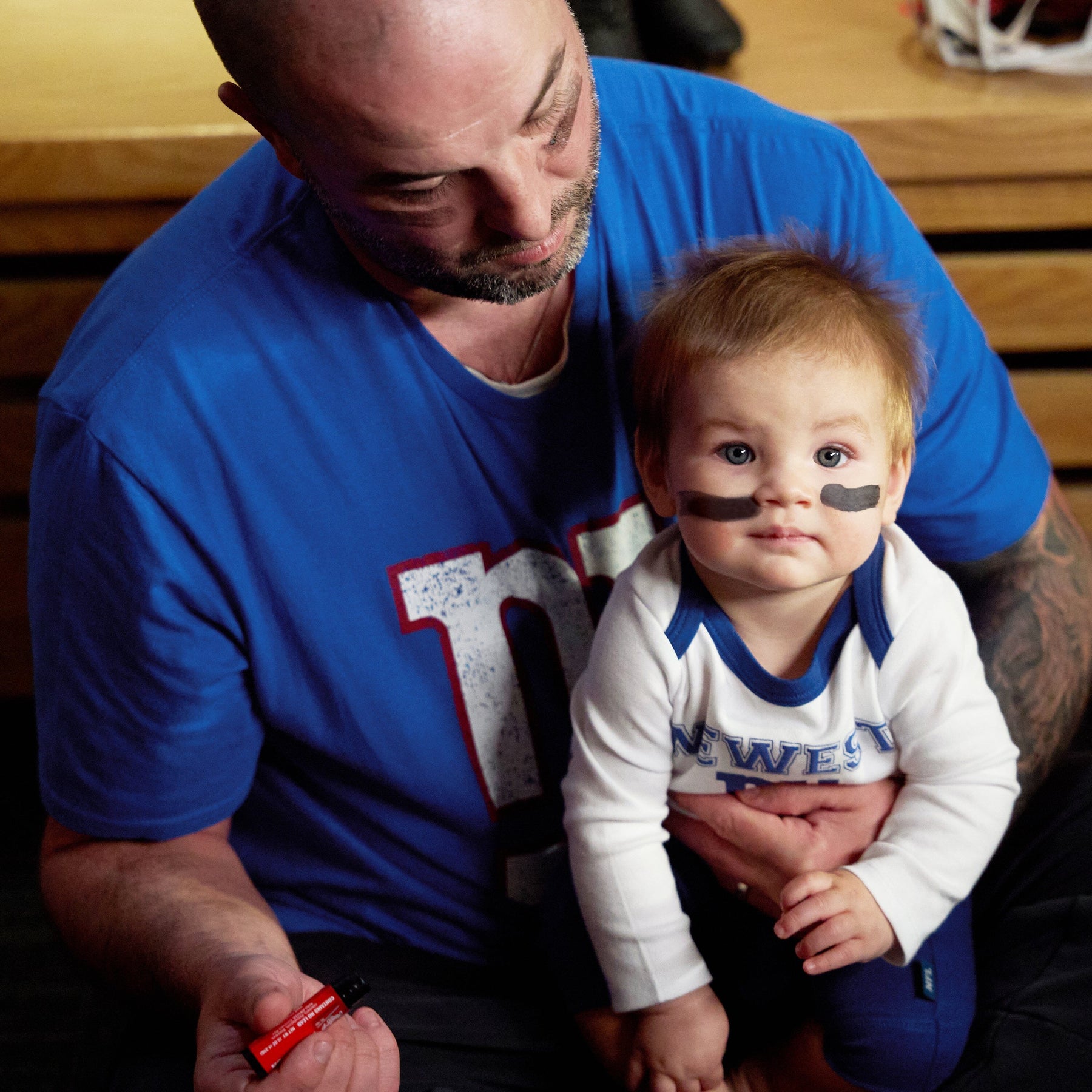 Your little one will be game-day ready in this cozy New York Giants 3-piece outfit! Whether they’re watching from home or tagging along for tailgate fun, the soft bodysuit with lap shoulders, comfy pull-on pants, and warm knit cap provide all-day comfort and style. Decorated in classic Giants blue and red with “Newest Fan” text and the team logo, this outfit is a perfect pick for showing team pride from the very beginning. Our essentials have been independently certified with STANDARD 100 by OEKO-TEX® so that you don’t have to worry about harmful substances in your baby’s wardrobe. Includes one bodysuit and cap with matching pants.