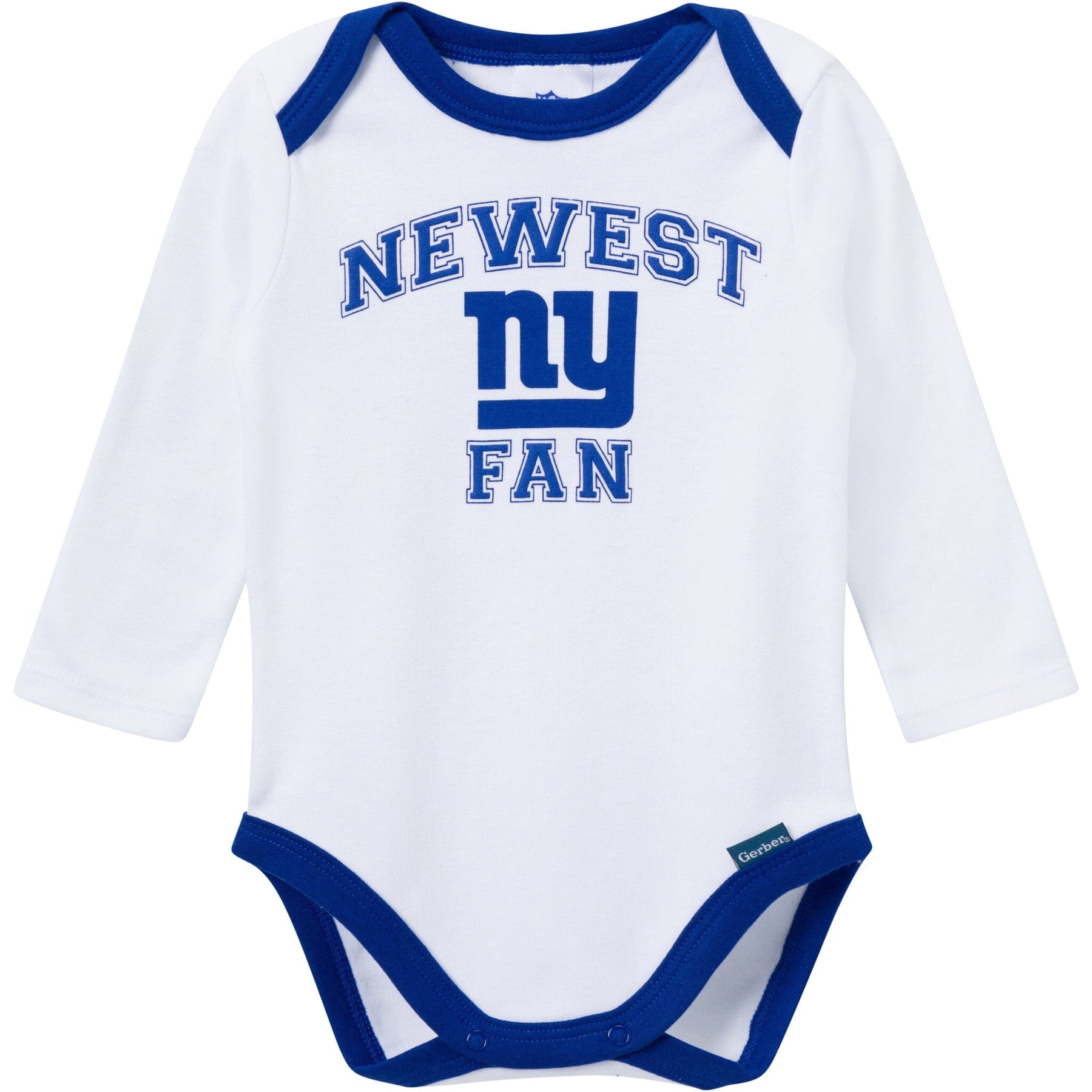• Blue and white outfit set, Giants logo with text reading "newest fan"