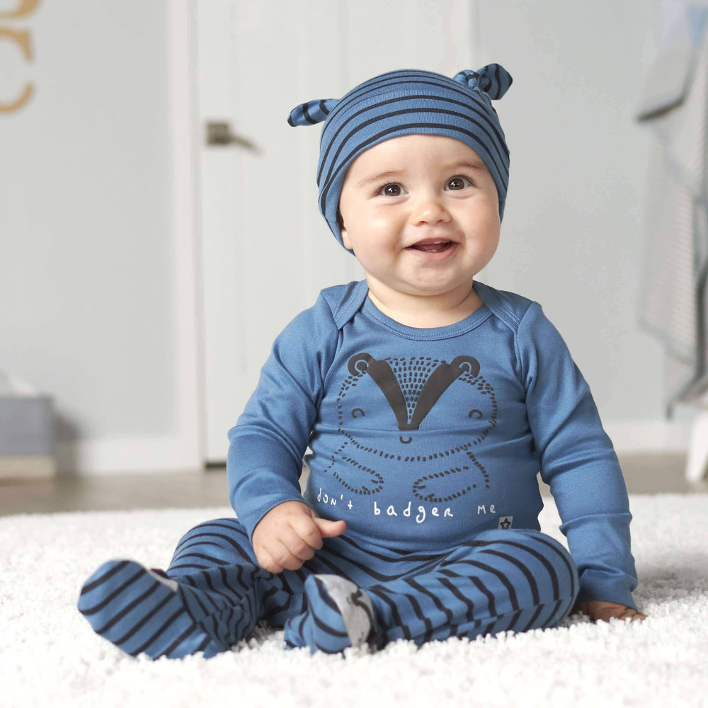 Our adorable 3-piece set is made with an innovative comfy stretch fabric, uniquely designed to grow as they wiggle and giggle about for all-day comfort.