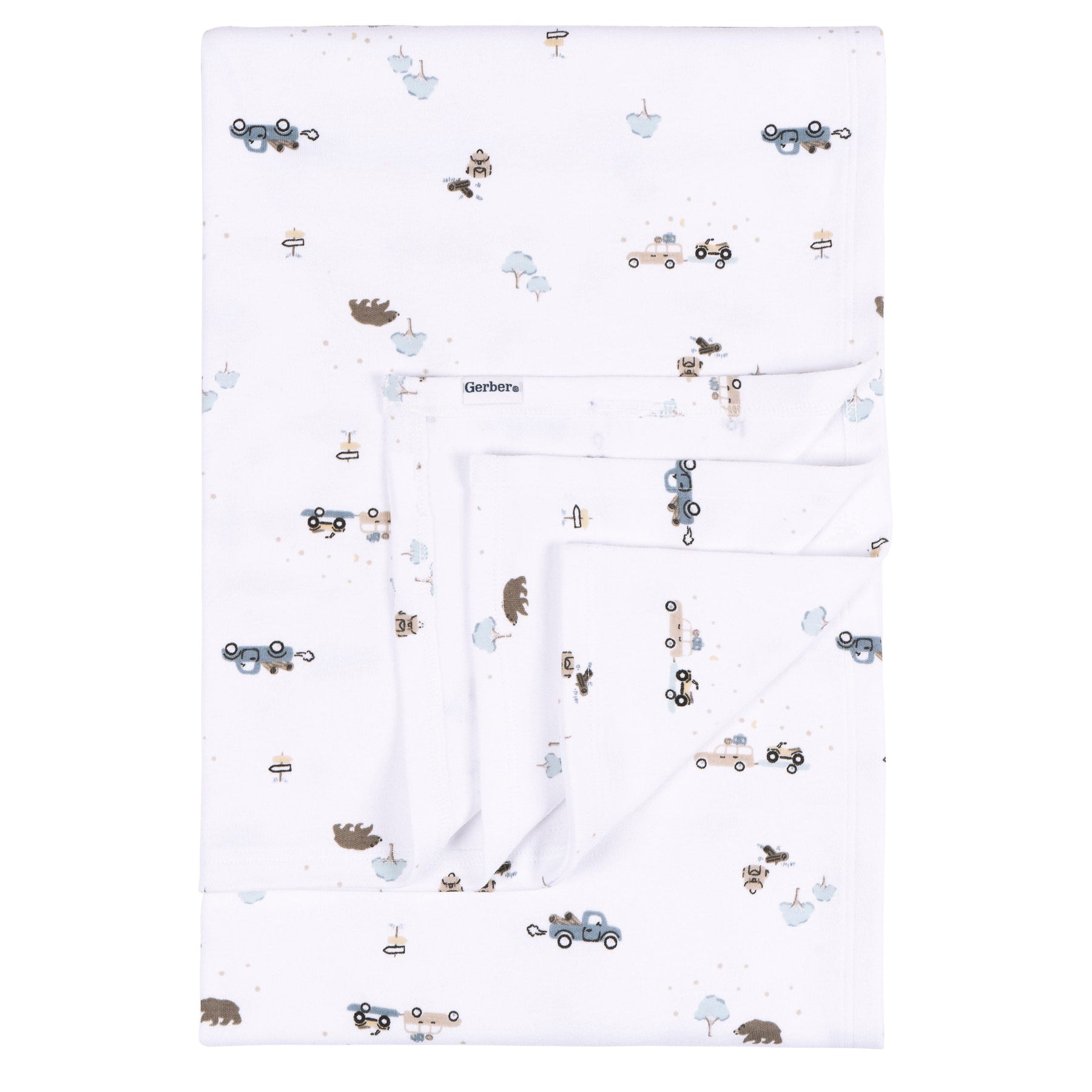 - Made with 1x1 rib trim for added flexibility and durability, blue with white star print/ Swaddle measures 40” x 40” for warmth and comfort, white with car and forest road trip theme
