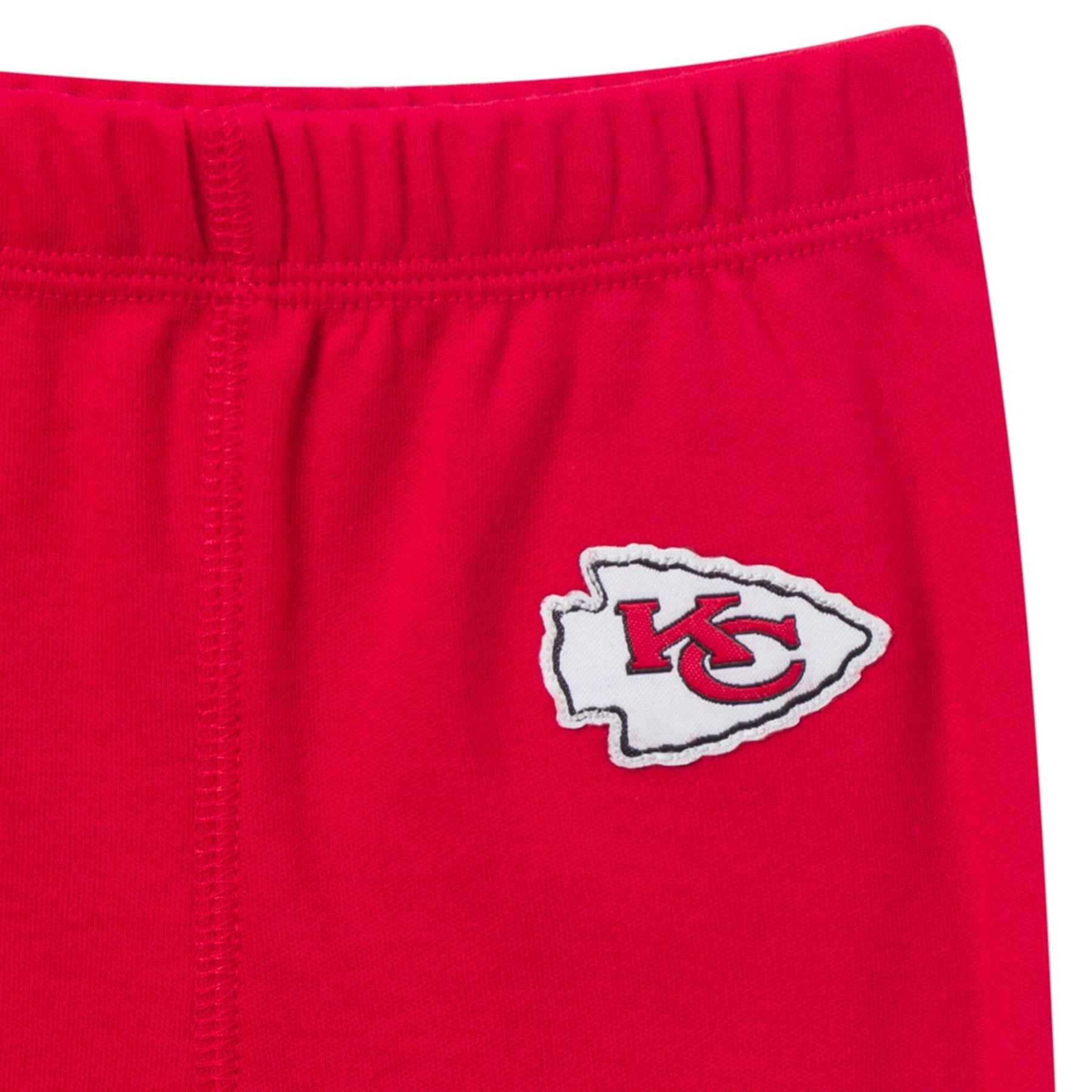 From playdates to kickoff, your little one will stay comfy and spirited in this Chiefs outfit set. Made with cozy interlock fabric, the long sleeve bodysuit keeps her warm and features team-themed puff art for extra flair. The pants are easy to slip on with a comfort-stretch waistband, and the matching headband with a satin team bow brings everything together. It’s a winning look for the tiniest fan on your roster.