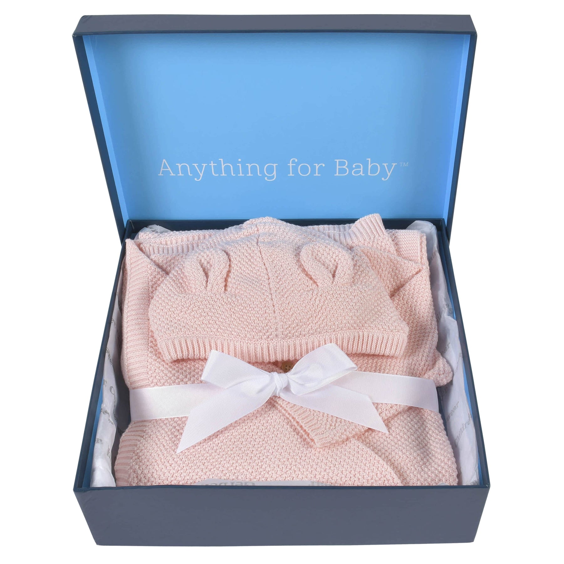• Includes one knit cardigan, one knit pant & one baby blanket