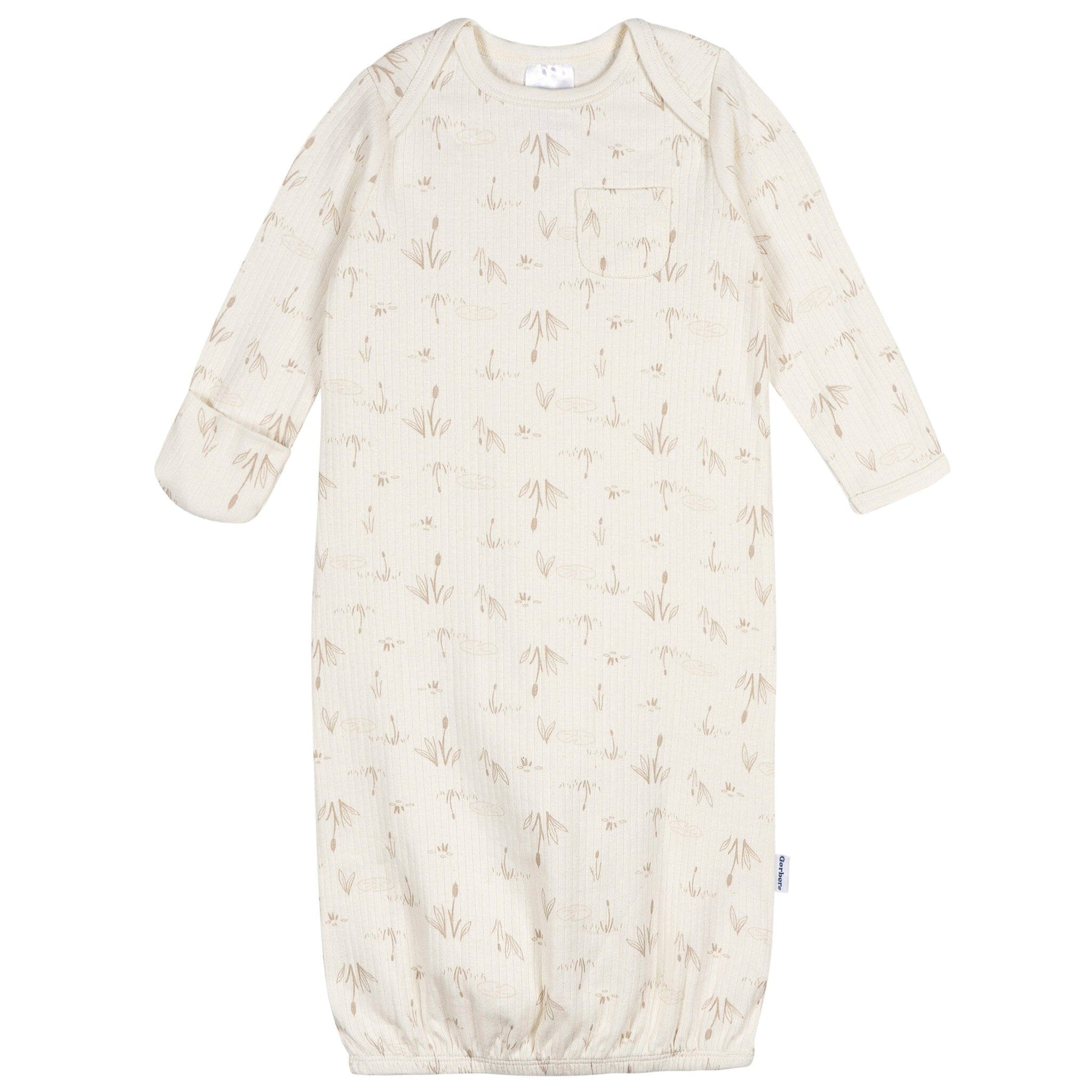 Our gown sets are the perfect outfits for newborns and this goose pond print adds the sweetest touch. Each piece is made with cotton and a touch of spandex for stretch, and mitten cuffs to help prevent accidental scratches. With easy-to-change features and easy-care fabric, parents will love the convenience of our gowns as much as your baby loves the comfort. We had this product independently certified with STANDARD 100 by OEKO-TEX® so that there's no worry about harmful substances in baby’s essentials. Pack includes one gown, one cap, and one bib.