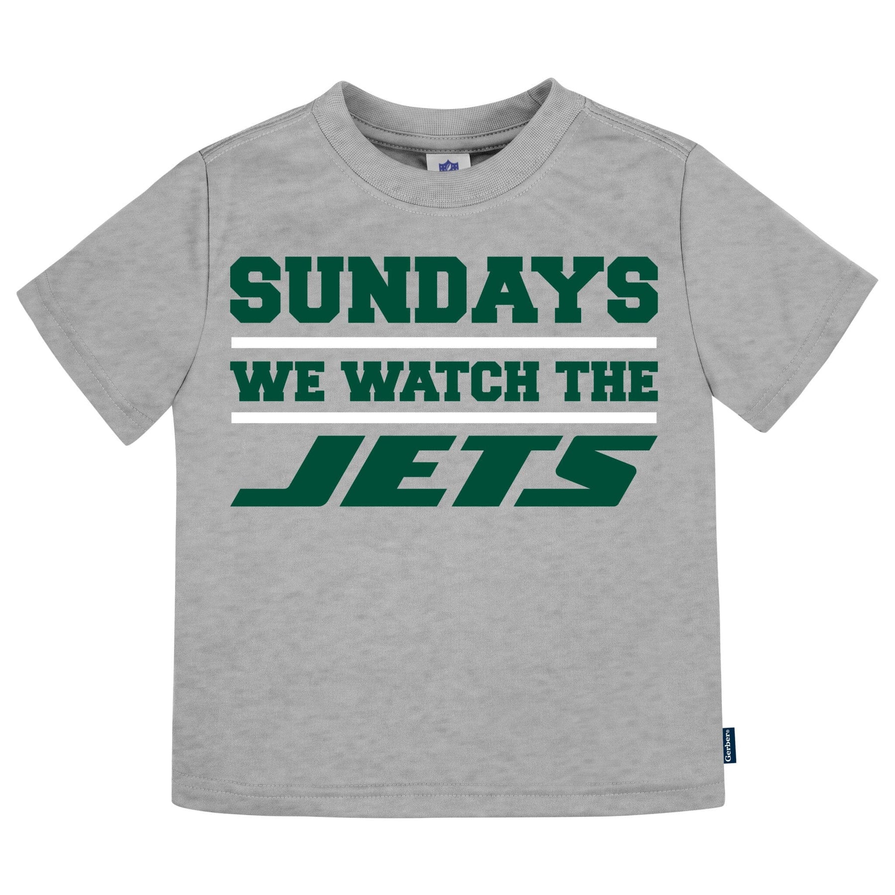 J-E-T-S, Jets, Jets, Jets! Your little fan will be ready for game day in these officially licensed New York Jets baby and toddler T-shirts. Made with soft, breathable fabric, these tees keep them comfy whether they’re cheering, playing, or tagging along to a tailgate. Featuring bold team graphics in signature green and white, they’re perfect for any young Jets fan. Our essentials have been independently certified with STANDARD 100 by OEKO-TEX® so that you don’t have to worry about harmful substances in your baby’s wardrobe. Includes three T-shirts.