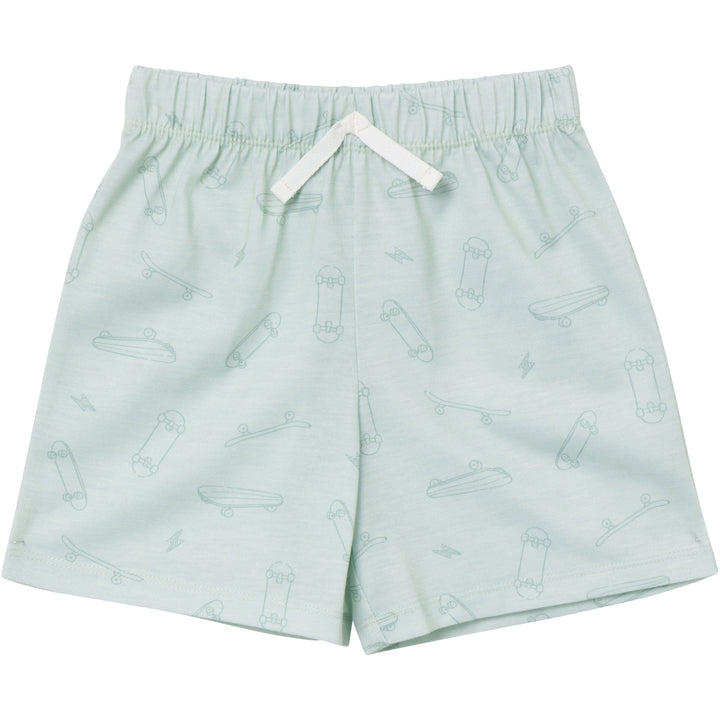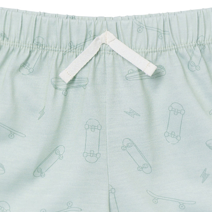 • Green/ gray and black with rock 'n roll screenprint art, faux tie on pajama shorts