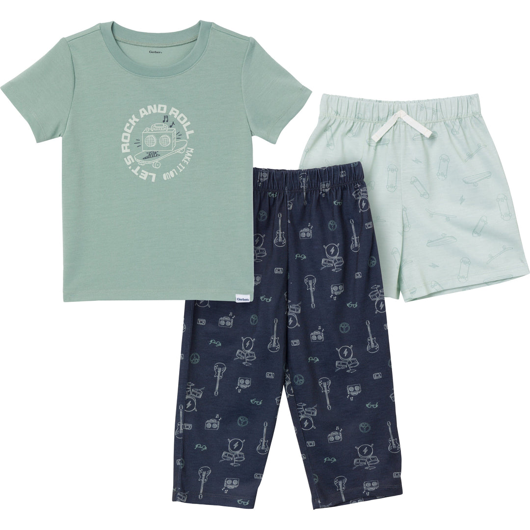 3-Piece Toddler Boys Rock & Roll T-Shirt, Shorts & Pants Pajama Set
