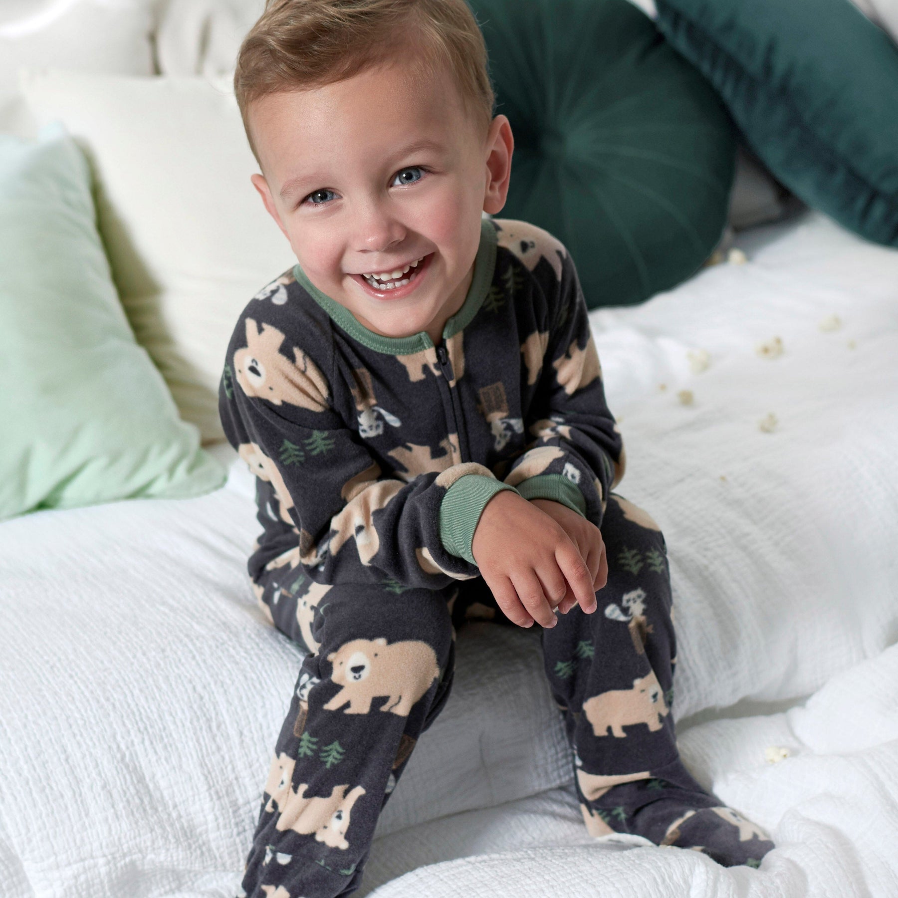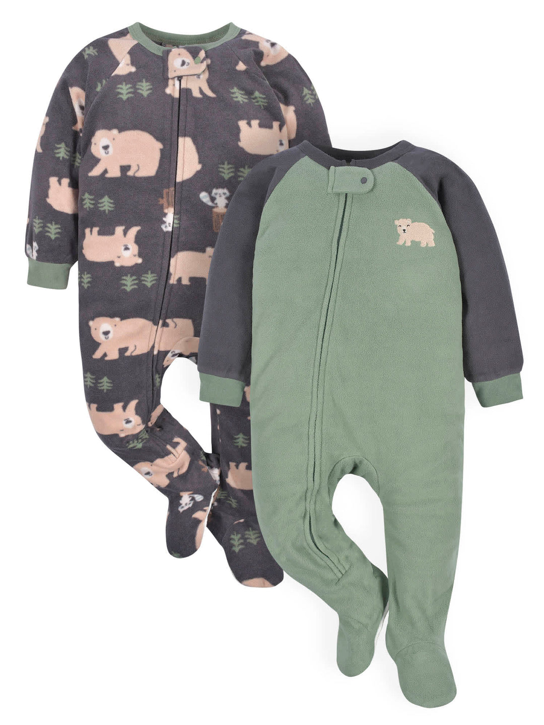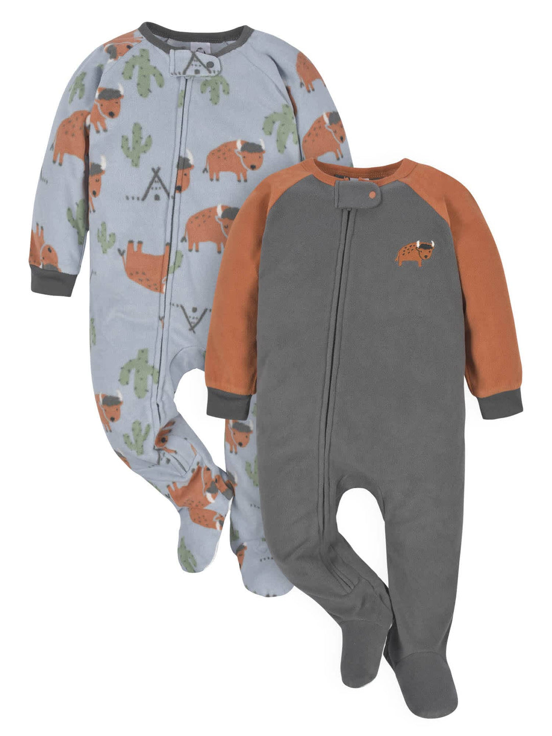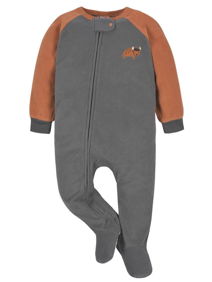 Our footed fleece fox pajamas are perfect for babies and toddlers to keep cozy all through the night! We use STANDARD 100 by OEKO-TEX® certification on products tested in an independent laboratory against a list of more than 400 harmful substances, including PFAS. This pack includes two buffalo themed blanket sleepers and two bear themed blanket sleepers.