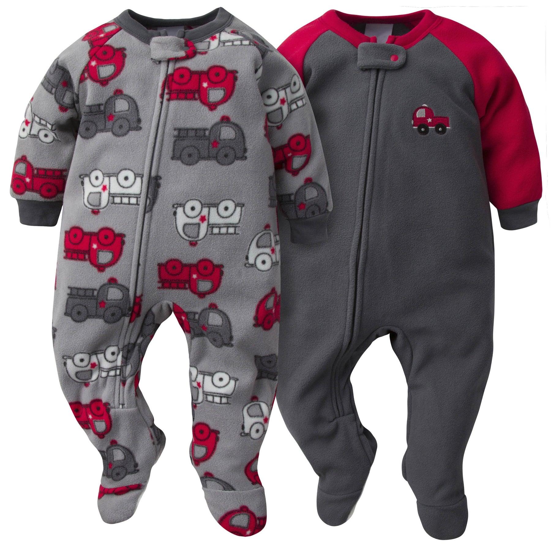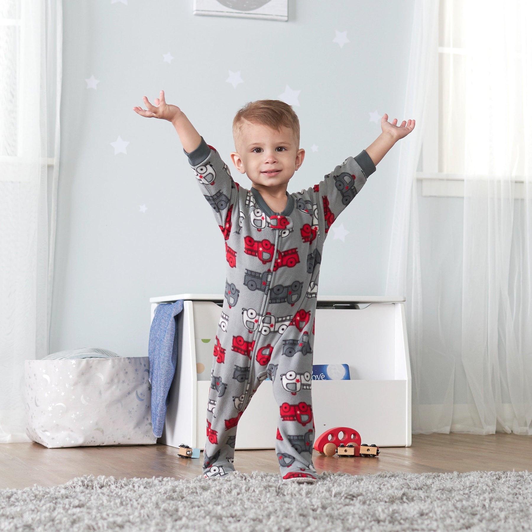 • Baby sizes (0-3M - 24M) feature a soft, safety snap atop the zipper to keep your little one comfy all night. Toddler sizes do not. Features soft & fleecy, flame-resistant fabric to keep your little one snuggled & warm. Give our baby pajamas & toddler pajamas as a thoughtful baby shower gift to be loved.