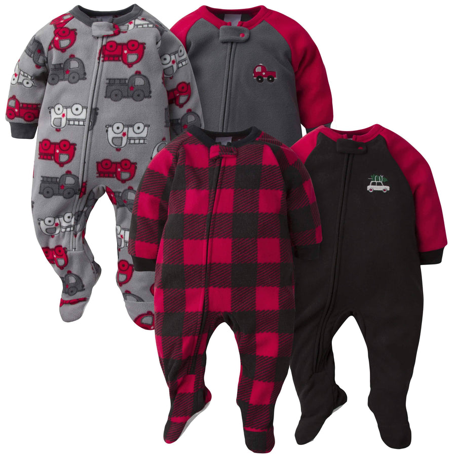4-Pack Baby Boys Fire Trucks & Plaid Fleece Pajamas