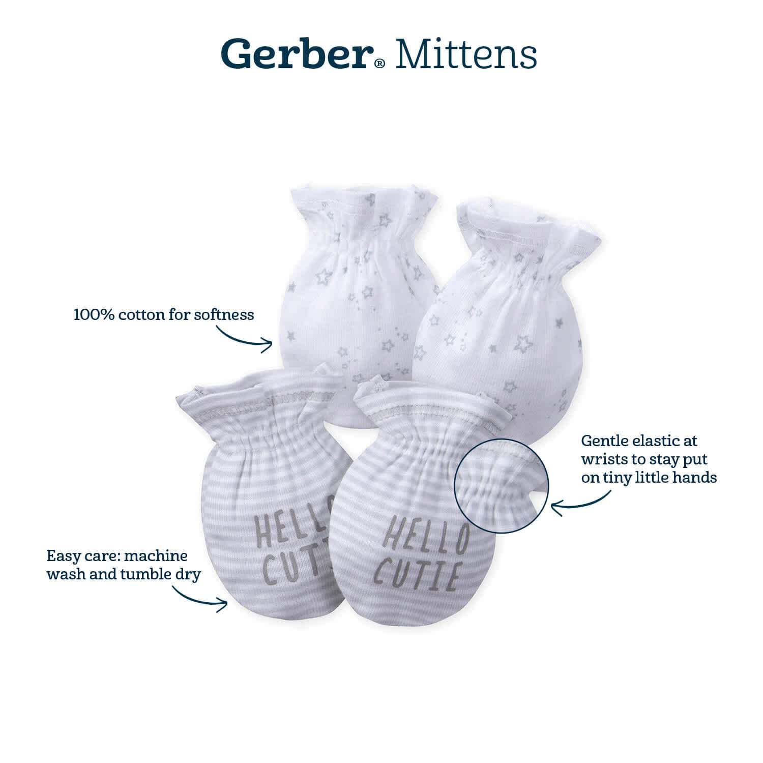 • Prevents your little one from accidentally scratching their sweet face during the day or at night. Features gentle elastic wristbands to keep mittens held comfortably in place. Perfect to mix & match. Pair with our Onesies® Brand bodysuits, baby pants, baby caps, baby socks, & other baby clothes for adorable outfit combos.