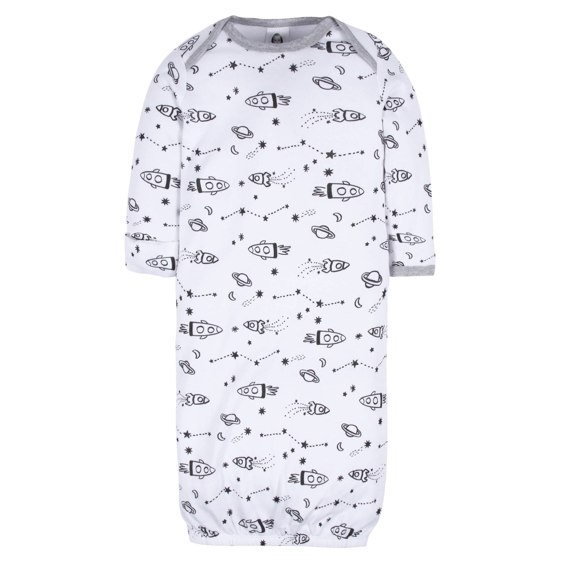 Our gowns are a must-have for newborns! Each one is designed for super quick diaper changes and may be worn during the day or the night. We use STANDARD 100 by OEKO-TEX® certification on products tested in an independent laboratory against a list of more than 400 harmful substances, including PFAS. This pack includes four gowns with space themed art.