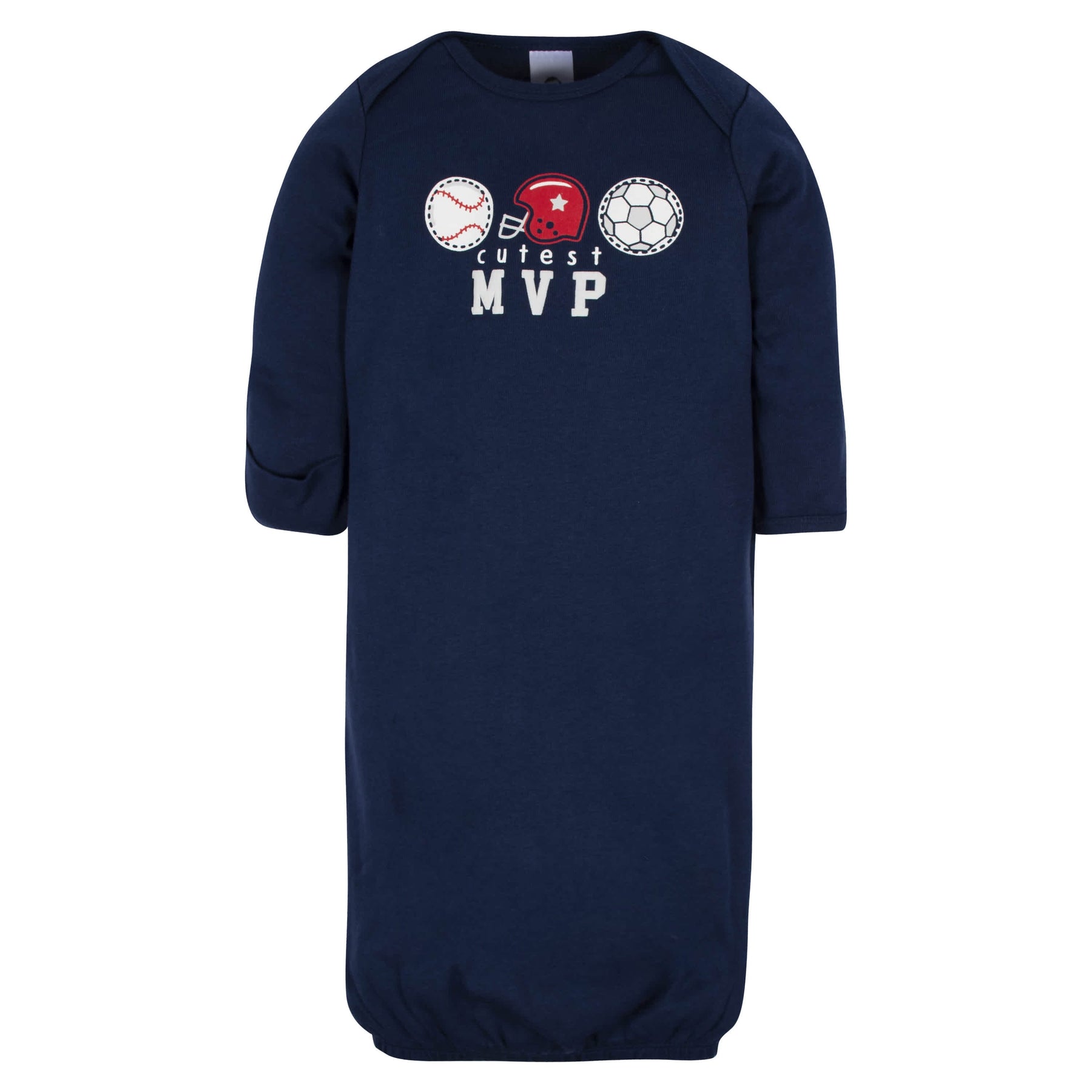 Our gowns are a must-have for newborns! Each one is designed for super quick diaper changes and may be worn during the day or the night. We use STANDARD 100 by OEKO-TEX® certification on products tested in an independent laboratory against a list of more than 400 harmful substances, including PFAS. This pack includes four gowns with sports themed art.