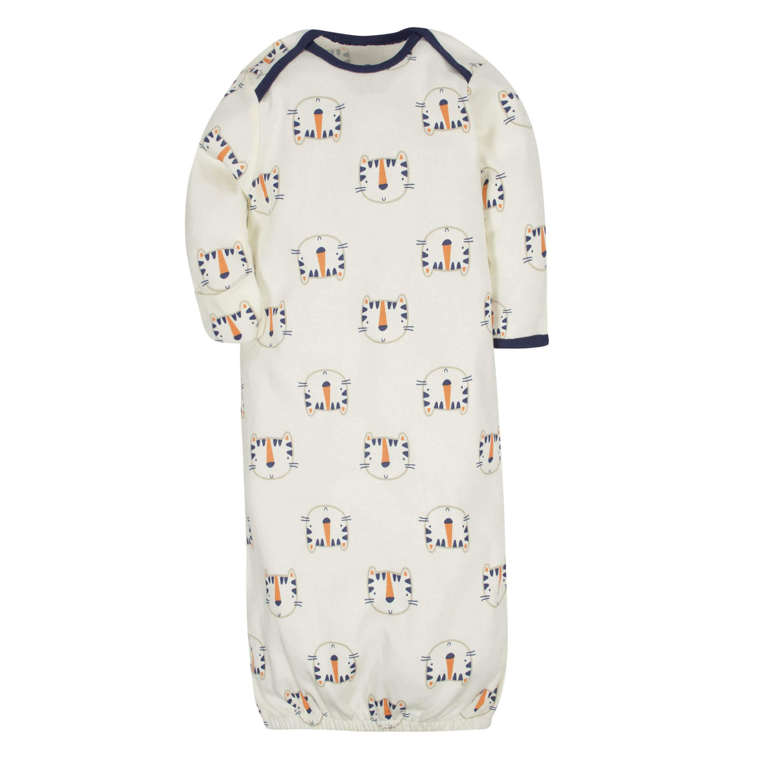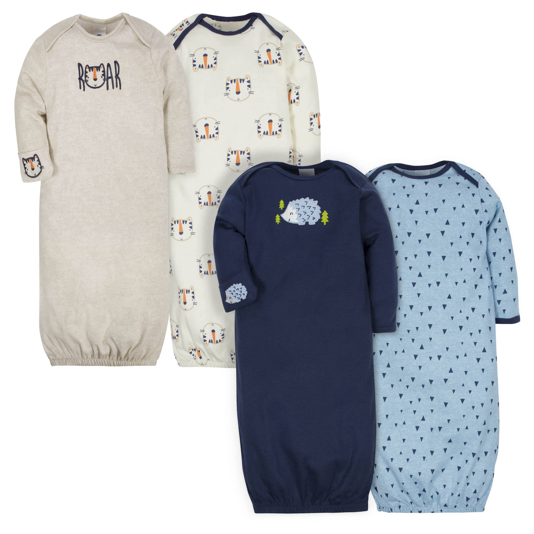 4-Pack Tiger & Hedgehog Baby Boys Gowns