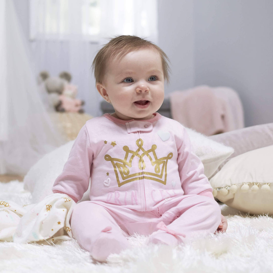 She'll look delightful in this 4-Pack of Sleep ‘n Plays! The Sleep ‘n Plays are cute, comfortable, and machine washable. Made with soft cotton, they’re perfect to wear during the day as well as to sleep in at night. They feature a snap atop the zipper to prevent irritation and are footed for warmth.