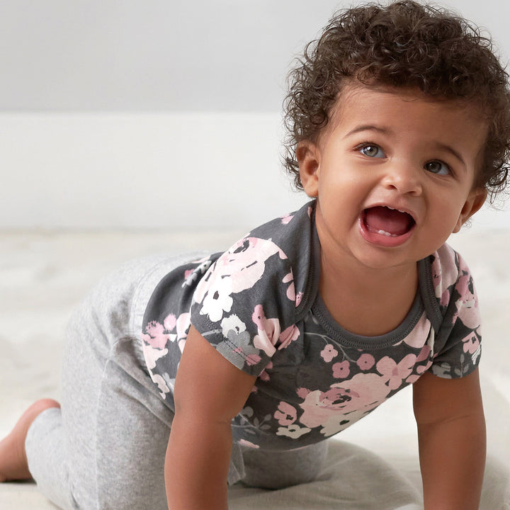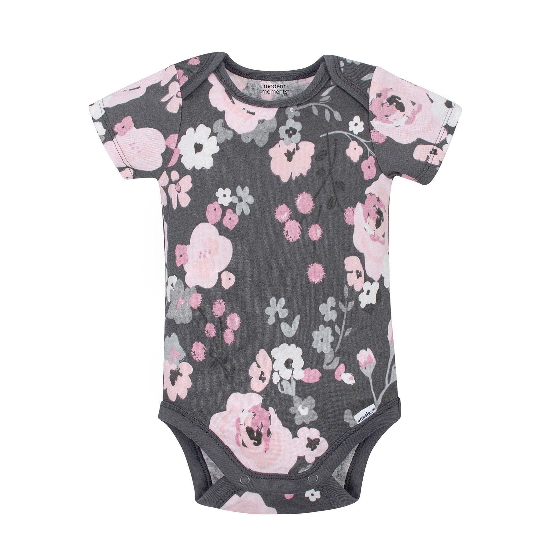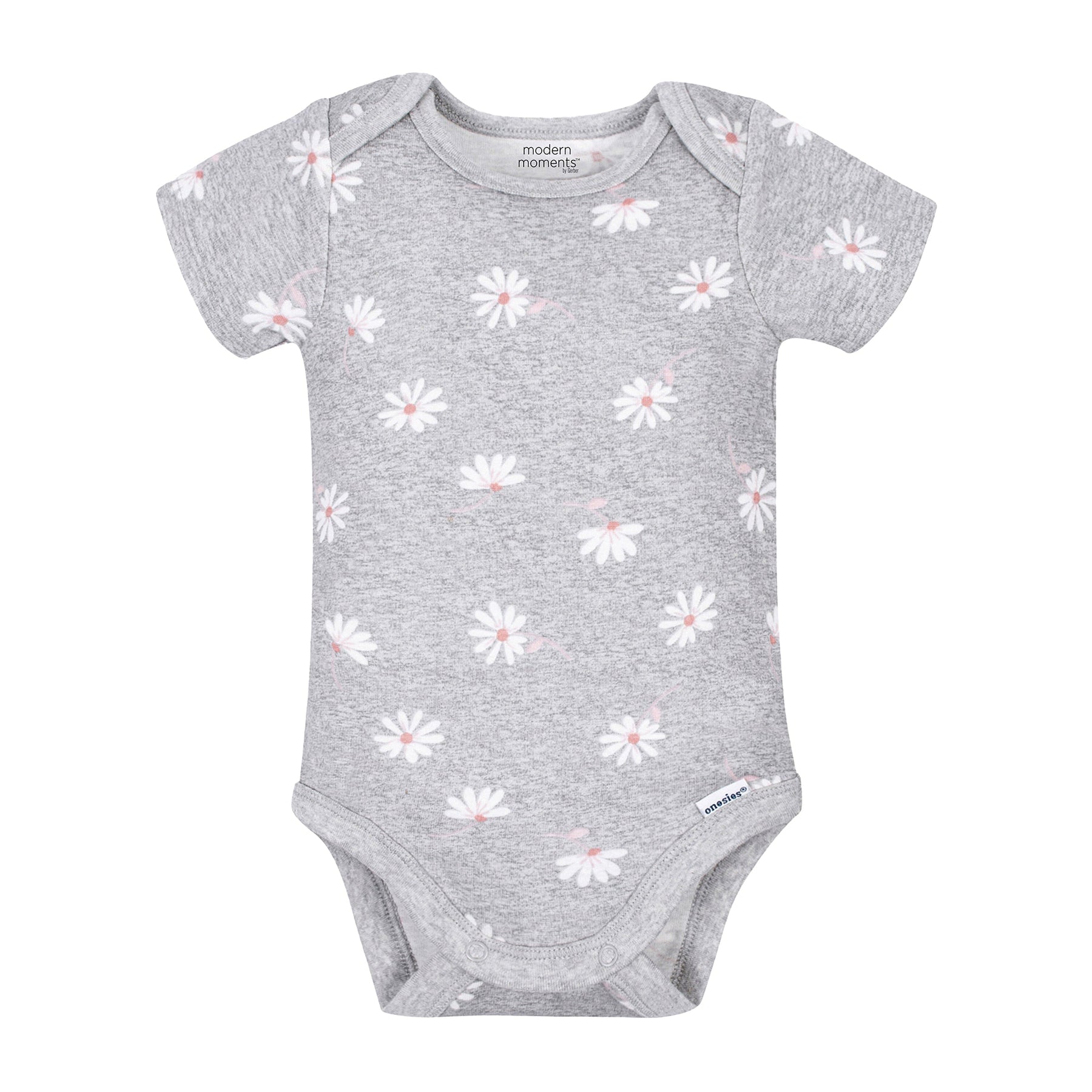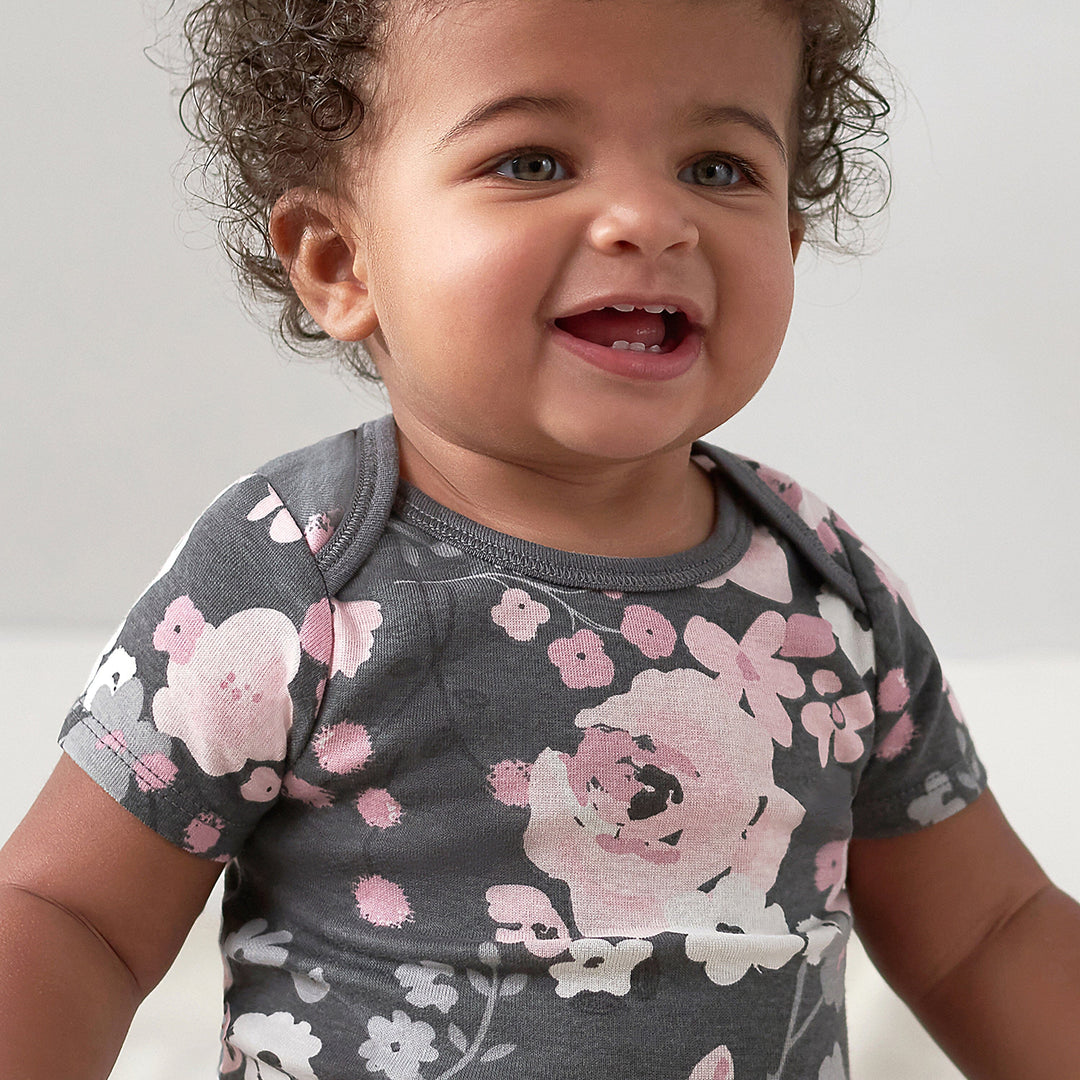 4-Pack Baby Girls Gray Floral Short Sleeve Onesies® Bodysuits