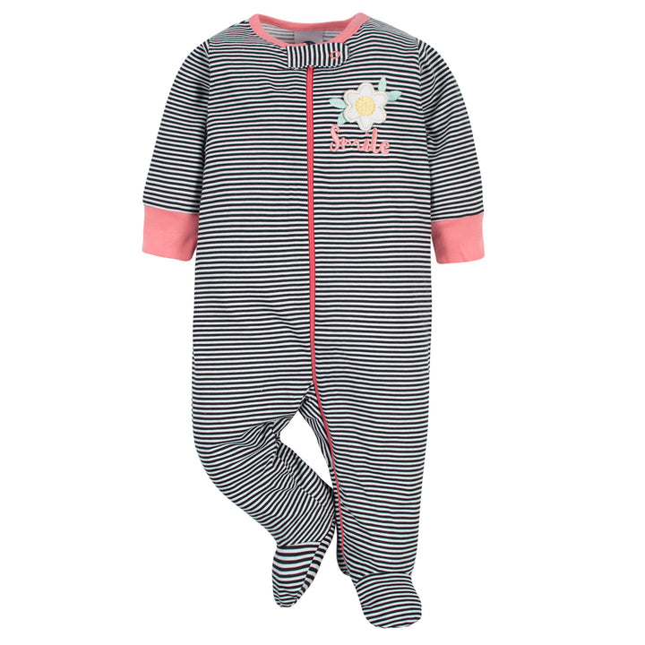Our Sleep ‘N Plays are the perfect any-time, any-activity outfit! Each piece is made with cotton, a super soft fabric that you and your little one will adore. We had this product independently certified with STANDARD 100 by OEKO-TEX® so that you don’t have to worry about harmful substances in your baby’s everyday essentials. They feature front zippers that make wardrobe changes and diaper changes super easy. The zippers also feature a safety tab at the top that prevents your little one being poked by the zipper. Our Sleep ‘N Plays are great casual outfits, perfect for playdates, and they also make excellent baby pajamas. This set includes four floral and love you print Sleep ‘N Plays. Each piece is machine washable and machine dryable for your convenience.
