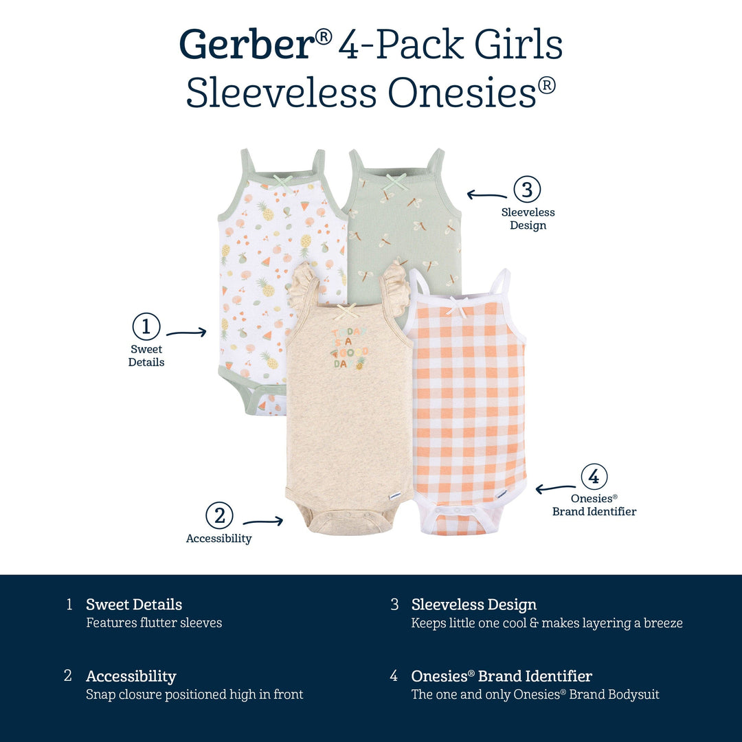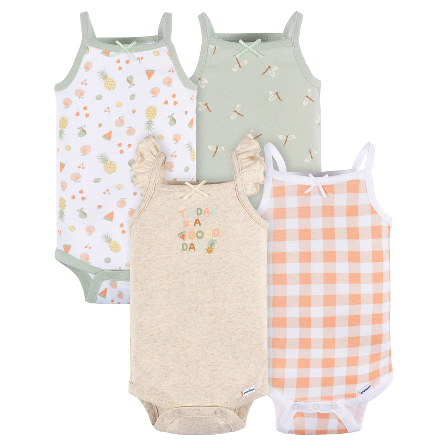 4-Pack Baby Girls Picnic Sleeveless Onesies® Bodysuits