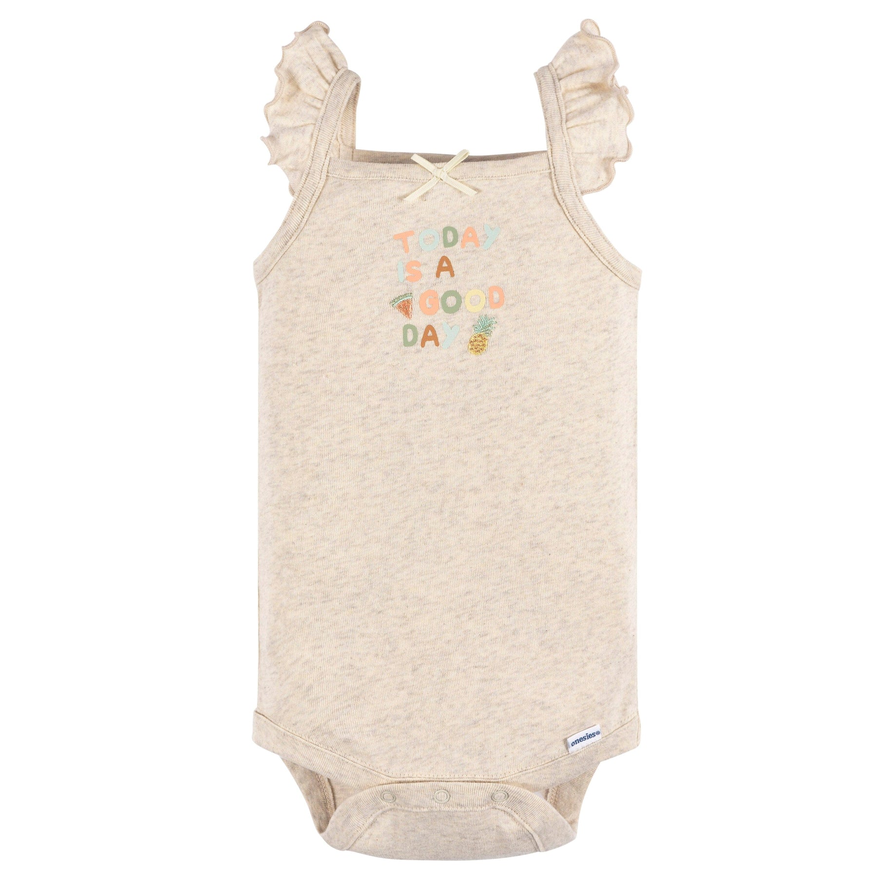 This pack of four baby girl bodysuits is the perfect spring and summer outfit or top for your little one! The sleeveless style keeps your little one cool on warm days and works as a one-piece outfit or layering piece with shorts for sunny day fun! With convenient snaps at the legs for easy dressing and diaper changes, these baby bodysuits will become a staple of your baby girl’s wardrobe. Our essentials have been independently certified with STANDARD 100 by OEKO-TEX® so that you don’t have to worry about harmful substances in your baby’s wardrobe. This pack includes four Onesies® bodysuits.