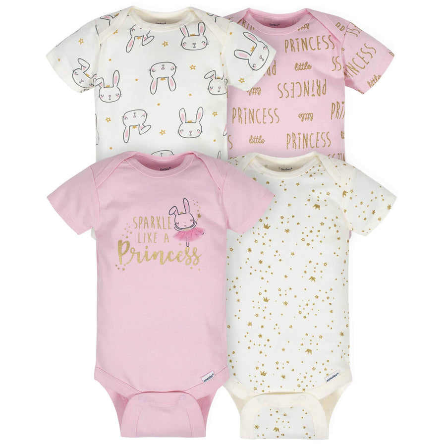 4-Pack Baby Girls Princess Short Sleeve Onesies® Bodysuits
