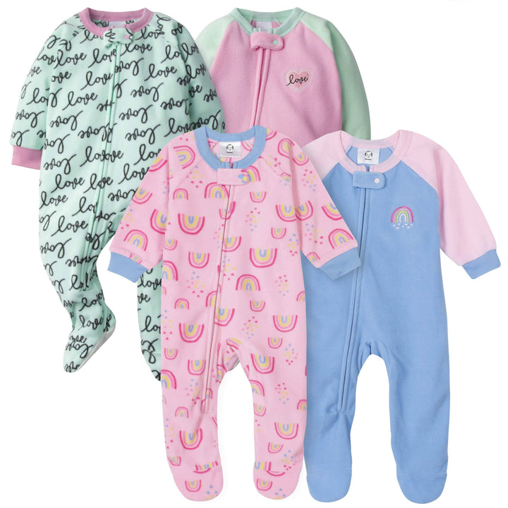 Gerber® 4-Pack Baby Girls Rainbows & Love Fleece Pajamas