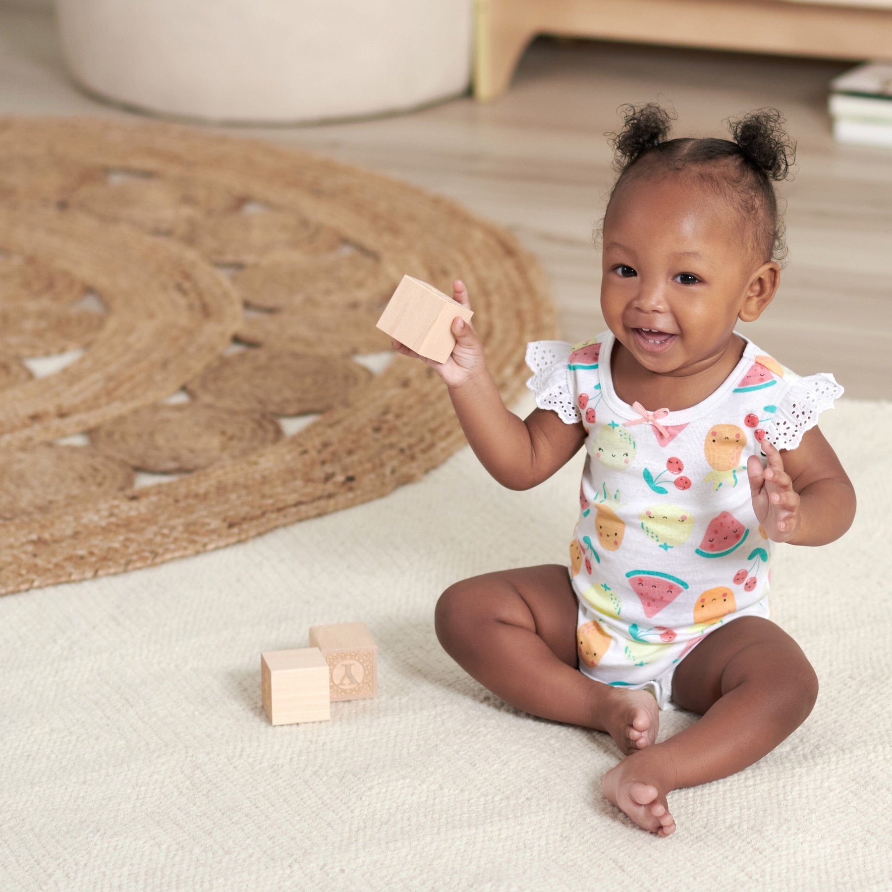 Get excited for Spring and Summer with our sleeveless fruit themed Onesies® bodysuits! Our sleeveless bodysuits are an essential part of any baby’s wardrobe because of their all-day comfort, convenience, and easy-care fabric. We use STANDARD 100 by OEKO-TEX® certification on products tested in an independent laboratory against a list of more than 400 harmful substances, including PFAS.