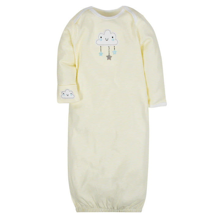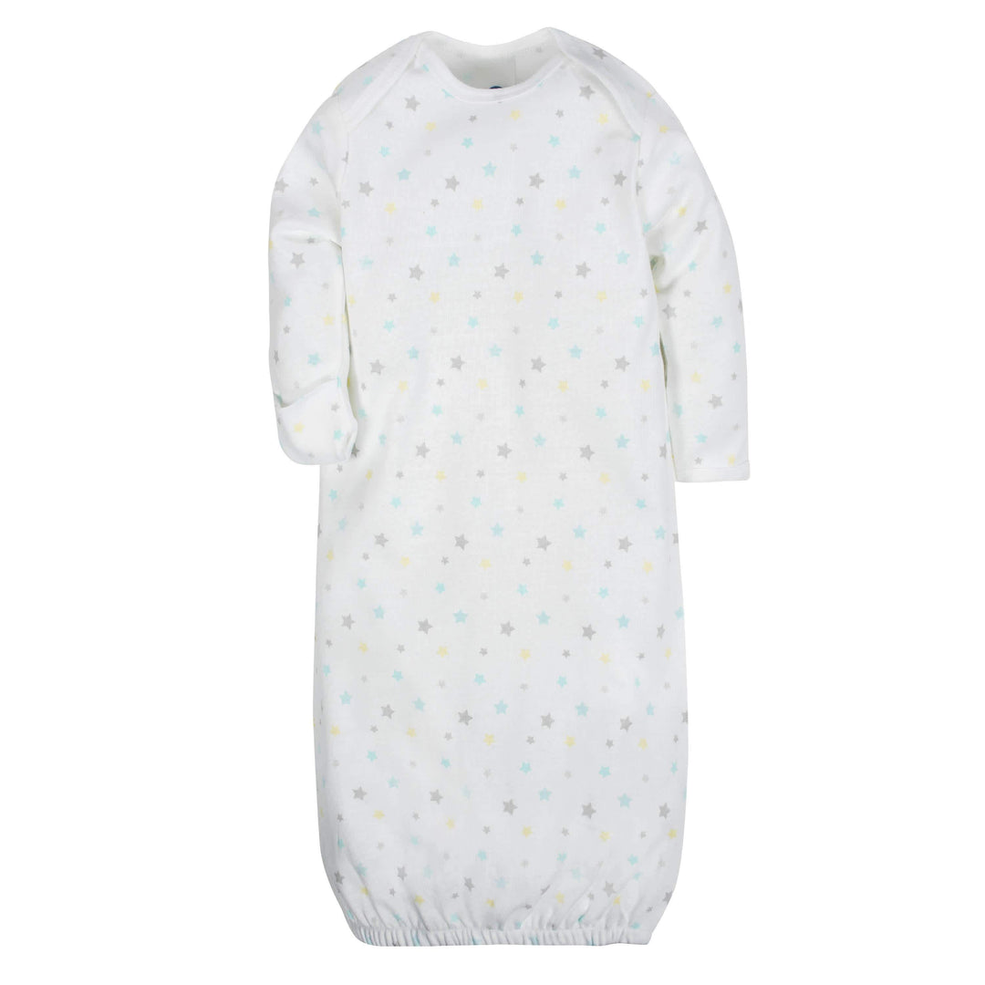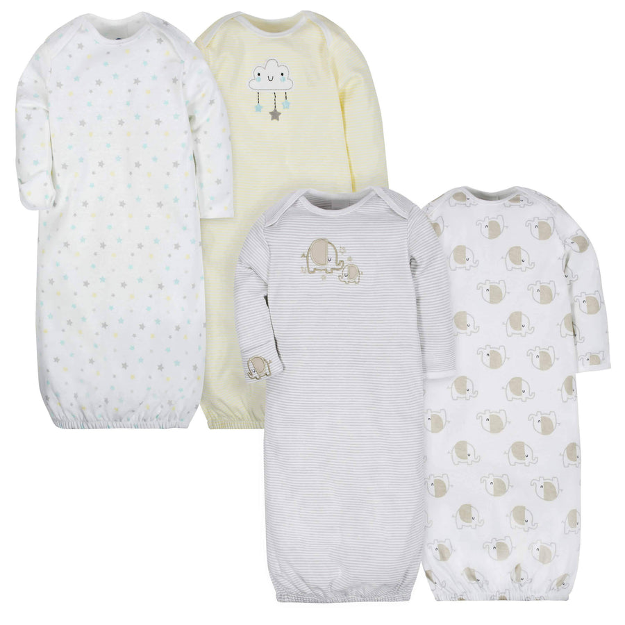 Keep baby cozy throughout the night with this 4-pack of baby boys’ gowns! Made with cotton rib, these outfits are soft and easy to clean. The open bottom and lap shoulder neckline keeps changing quick and simple. They feature mitten cuffs to prevent accidental scratches. Plus, they’re adorable!