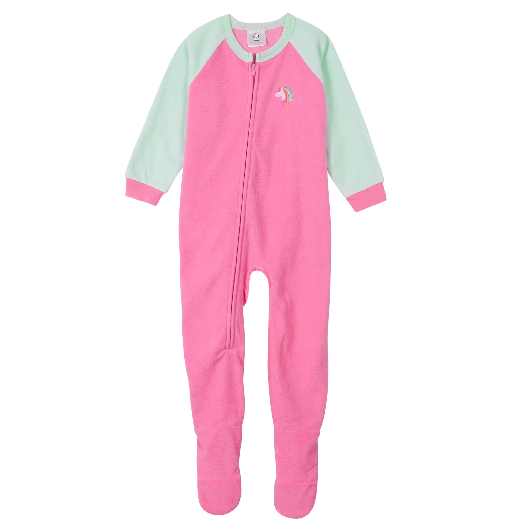 Our microfleece blanket sleepers are perfect for when you’ve got the AC on high or it’s chilly outside. Made with polyester microfleece, they’re soft and flame resistant for safety. Each toddler blanket sleeper features a zipper down the front to keep middle-of-the-night changes quick and simple (this one’s for all the tired parents out there!). Plus, the zippers all have safety tabs at the top to prevent their sweet, squishy chins from being poked and irritated. These snuggly baby and toddler sleepers are designed with fun prints and colors to add a little excitement to sleepy time. Each blanket sleeper is machine washable and dryable because nighttime accidents happen a little, let’s get real, a lot more often than we’d like! We’re here to keep your toddler pajama routine as simple as possible. This pack includes four blanket sleepers.