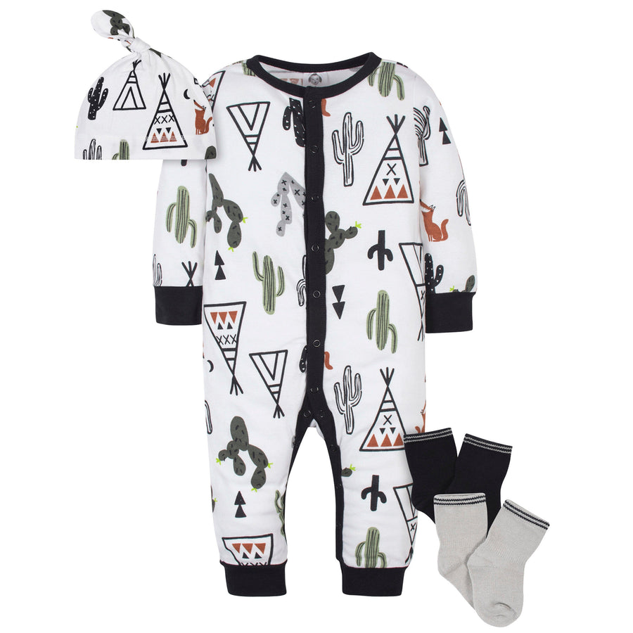 4-Piece Baby Boys Desert & Stripes Coverall, Cap, & Wiggle-Proof™ Socks